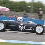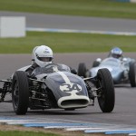 The rear-engined Formula Juniors raced just as hard although no one quite had an answer to the pace of James Murray’s Lola Mk5 in the first race. Teenager Benn Tilley made an impressive Junior debut with a strong second in Paul Smeeth’s Lotus 22 and gave chase to Murray as he pulled clear of the rest of an early battle for second.