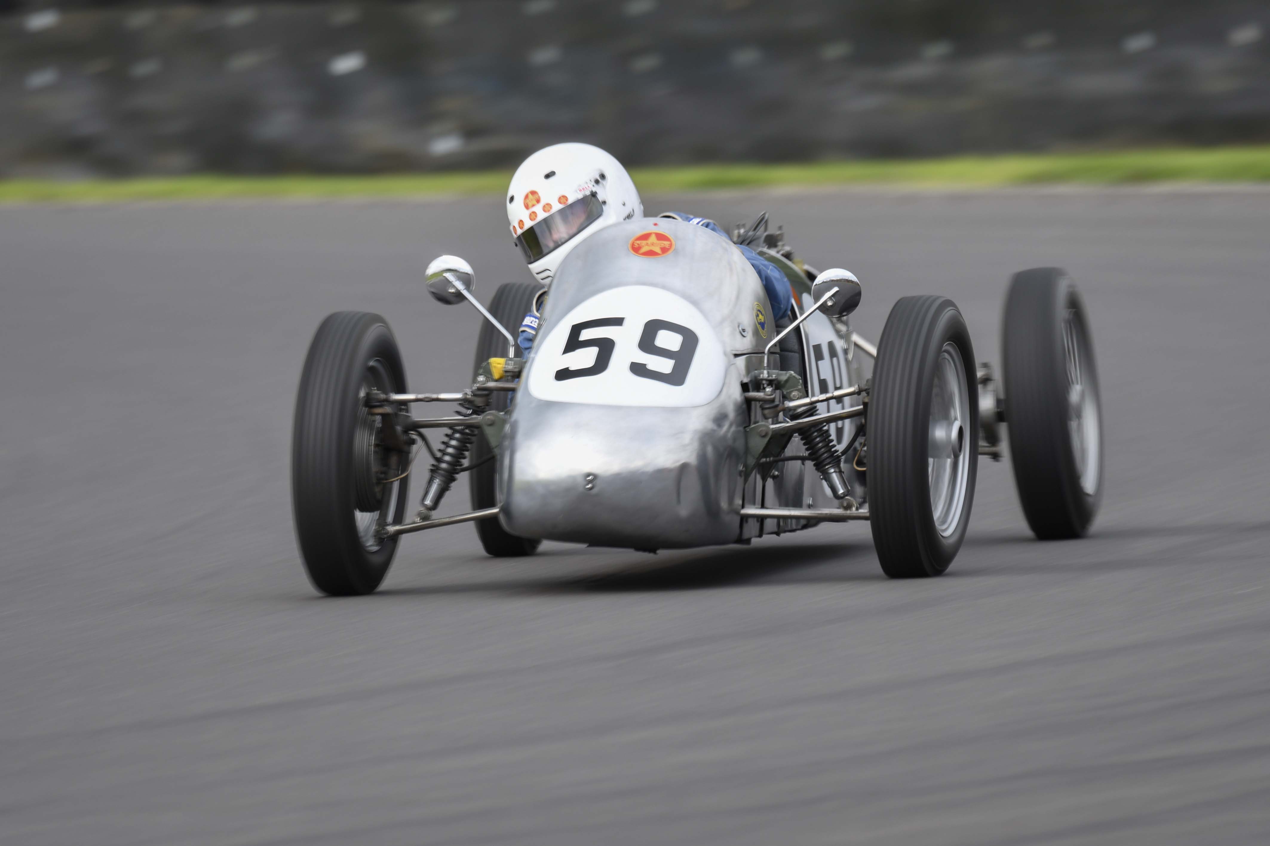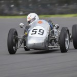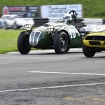 The ‘Silverline’ Historic Formula Junior championship race saw Ben Tilley take a great victory in the Lotus 22 with pole man Peter De La Roche in the drum braked BMC Mk 2 a fine second. Richard Smeeton was 3rd in the unusual Wainer with a great performance against the two young chargers ahead of him.