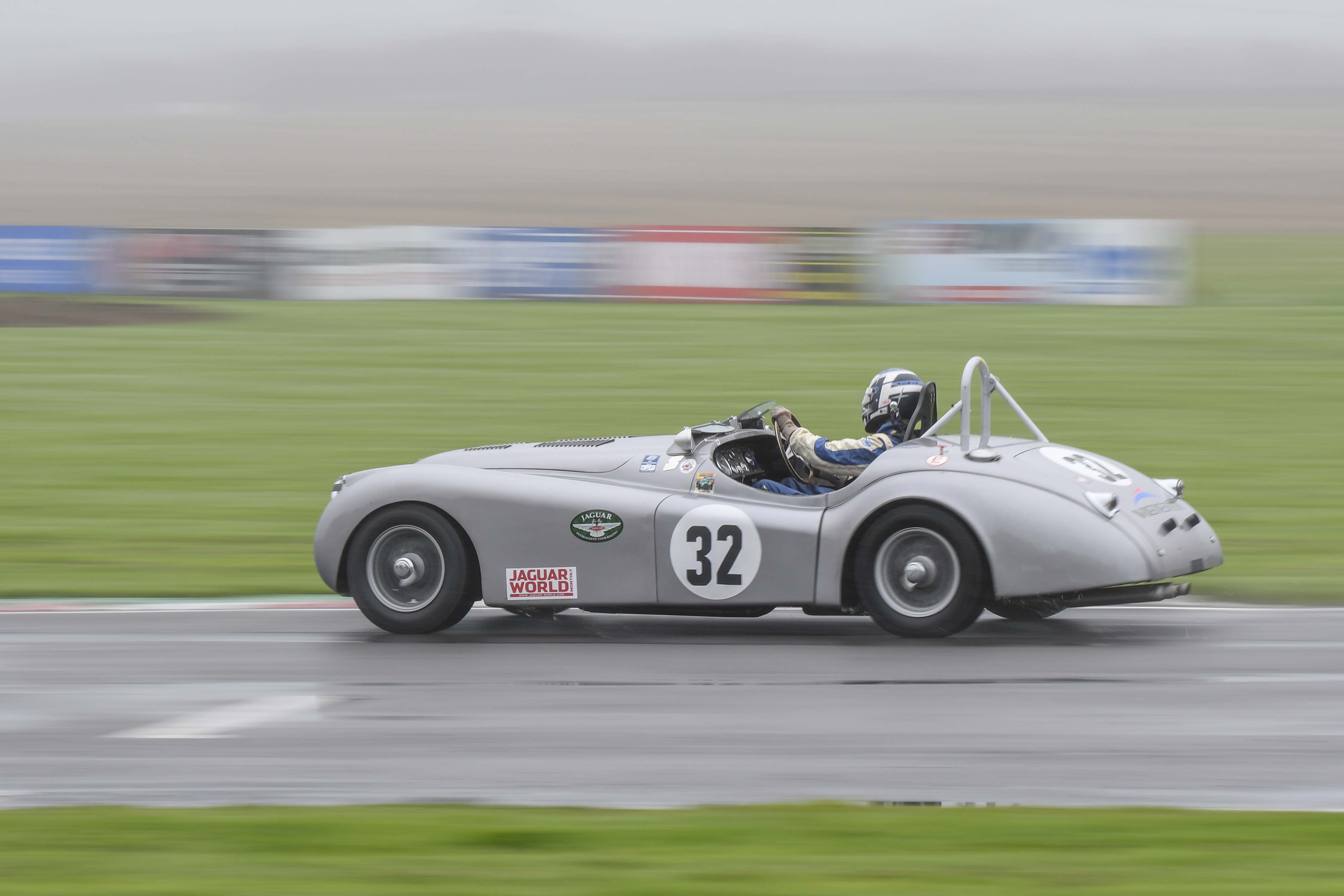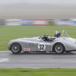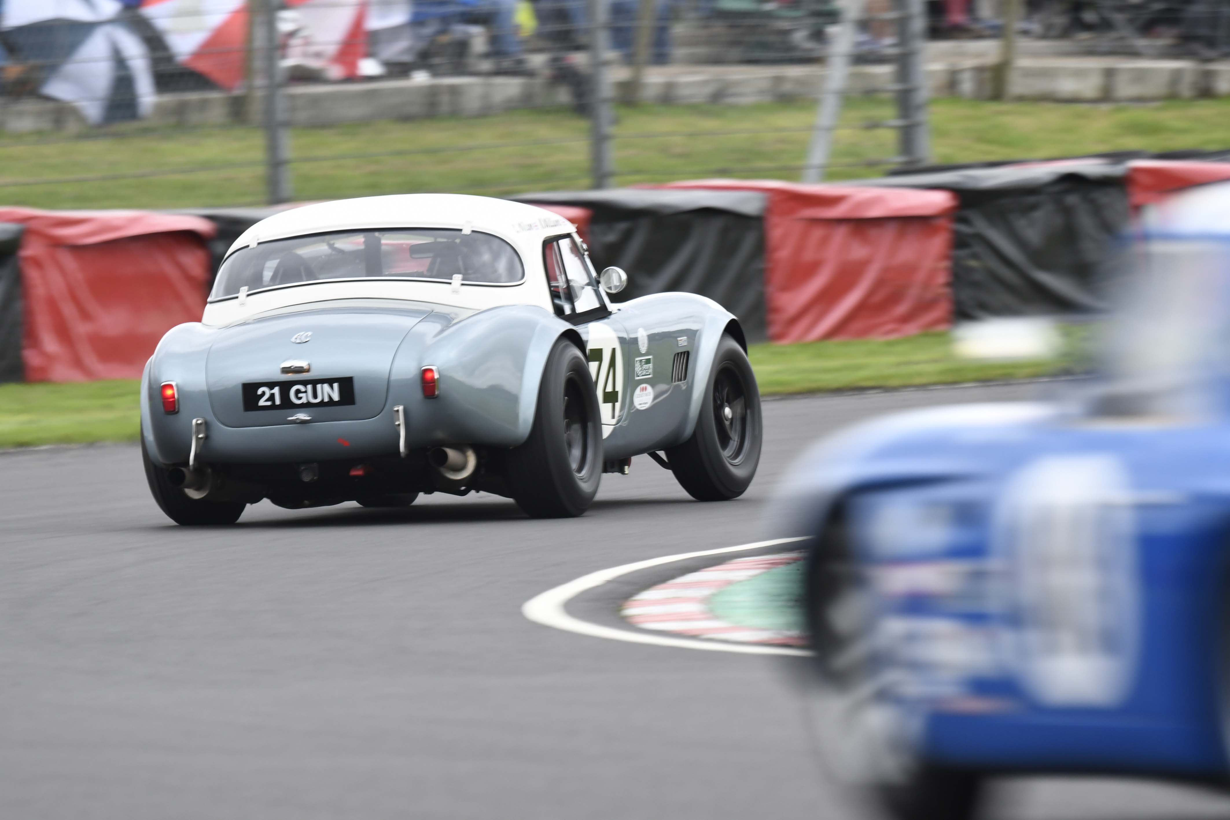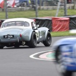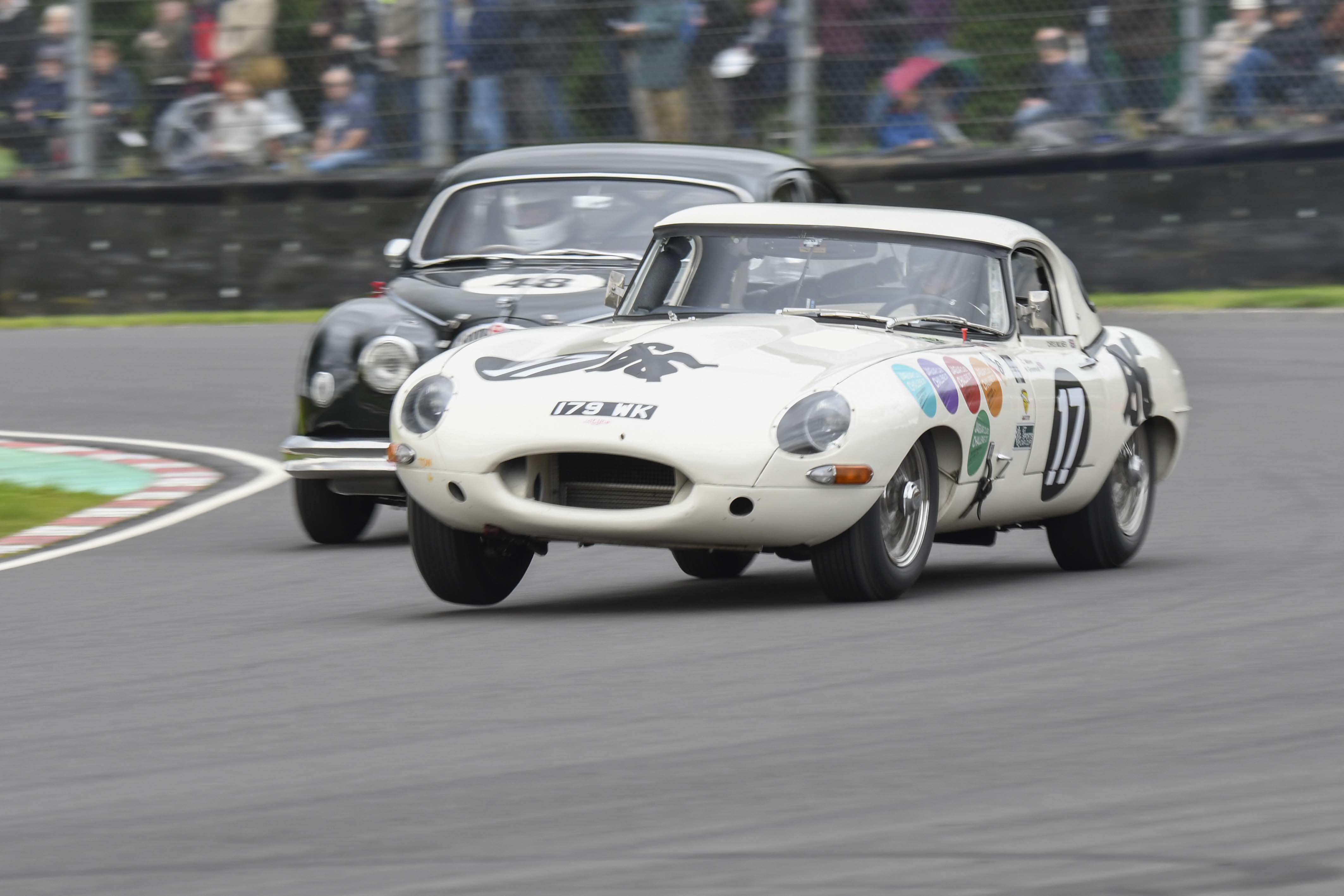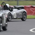 Also showing his immense skill in the wet qualifying conditions of the ‘GT & Sports Car Cup’ race was Greensall. Driving the GT3 class E Type Jaguar in which he had led the prestigious Kinrara Trophy race at Goodwood, the Cheltenham man again humbled the lightweight Jaguars and Cobras from the GT4 class with a time 1.8 seconds faster than his nearest rivals, Philip Walker and Miles Griffiths in Walker’s Lotus 15.