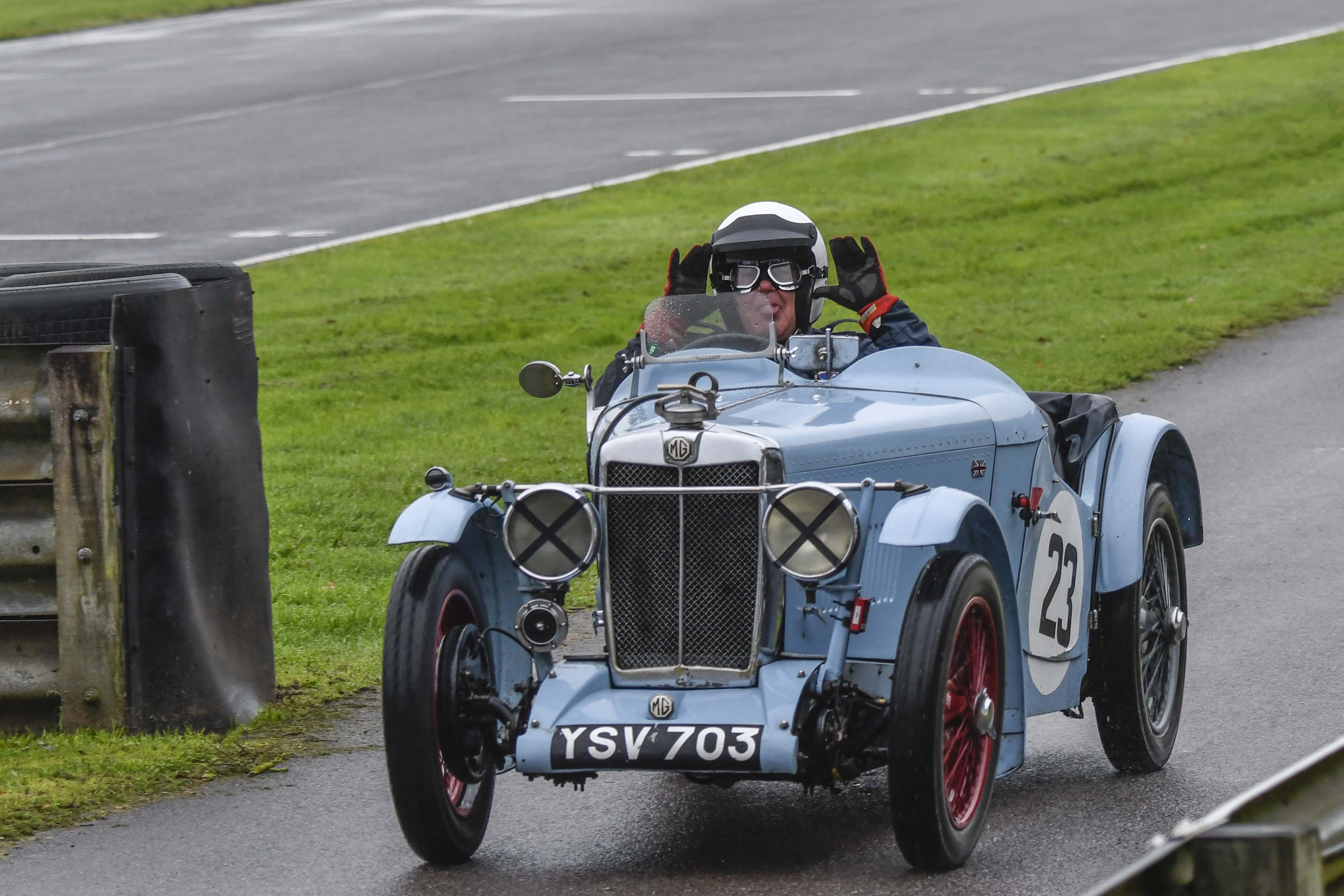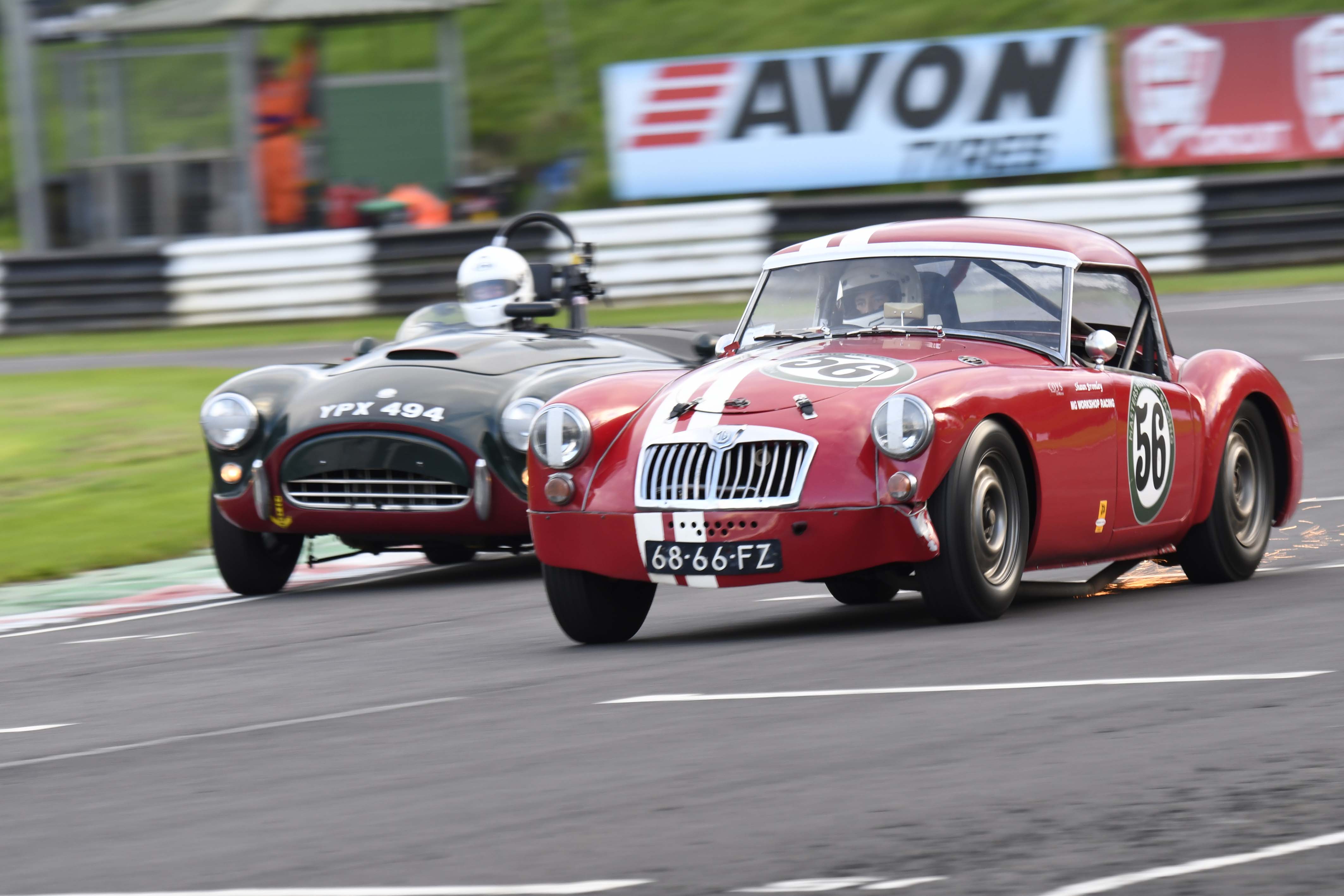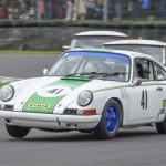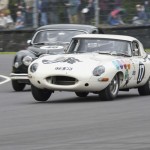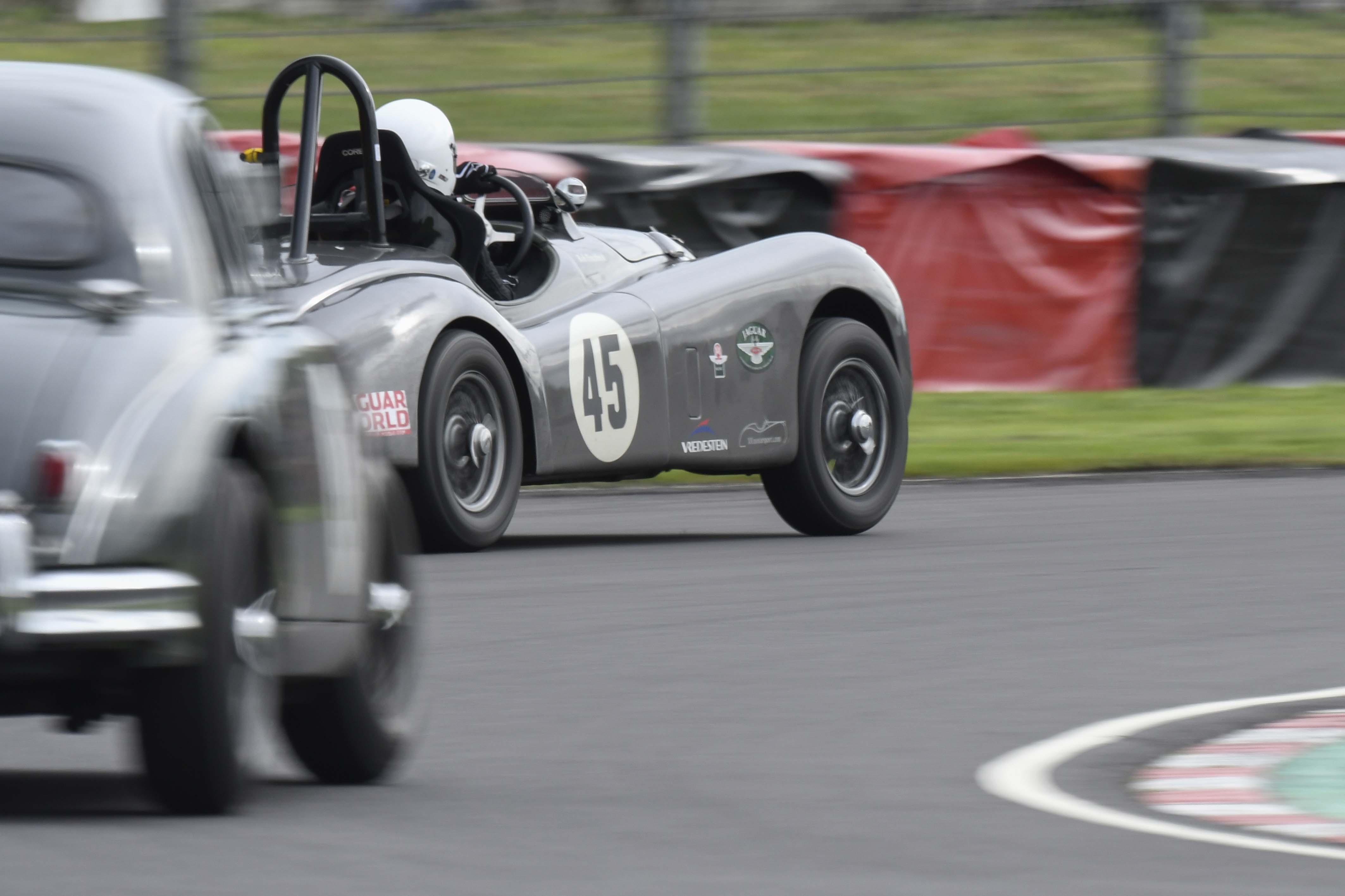 Also showing his immense skill in the wet qualifying conditions of the ‘GT & Sports Car Cup’ race was Greensall. Driving the GT3 class E Type Jaguar in which he had led the prestigious Kinrara Trophy race at Goodwood, the Cheltenham man again humbled the lightweight Jaguars and Cobras from the GT4 class with a time 1.8 seconds faster than his nearest rivals, Philip Walker and Miles Griffiths in Walker’s Lotus 15.