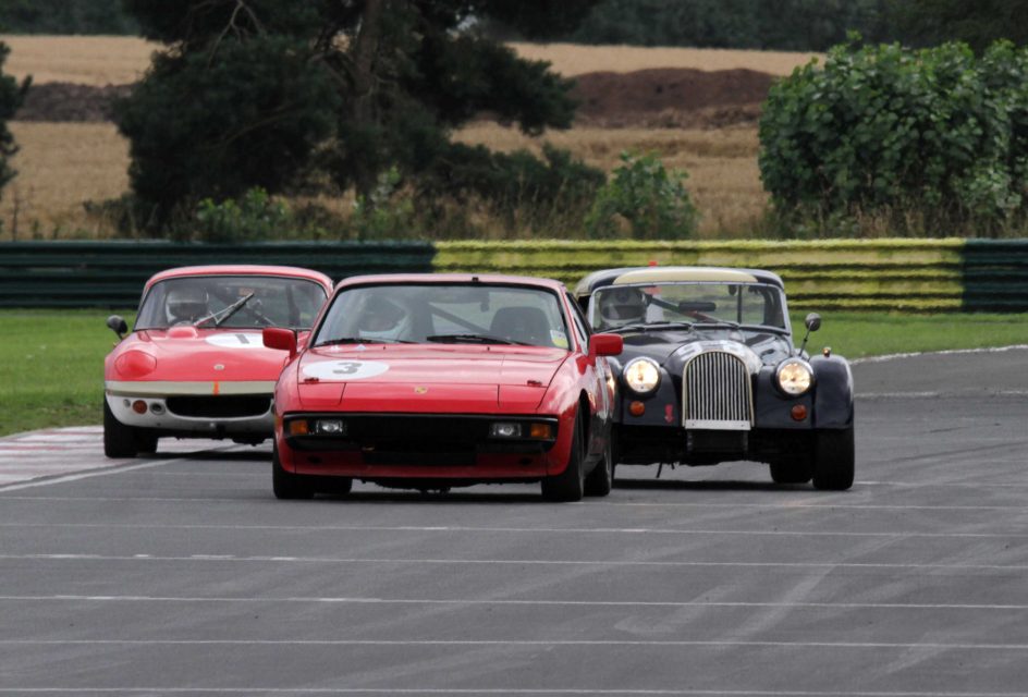 The 70s Road Sports races provided plenty of action and an array of different cars. The two races were won by last year’s champion Jeremy Clark in his Lotus Elan and Will Leverett in his Lotus Europa. These two were joined in the main battle at the front by Kevin Kivlochan’s Morgan Plus 8. Leverett’s father Mark was also in the mix, though although only for the first half of race one as he hit steering problems.