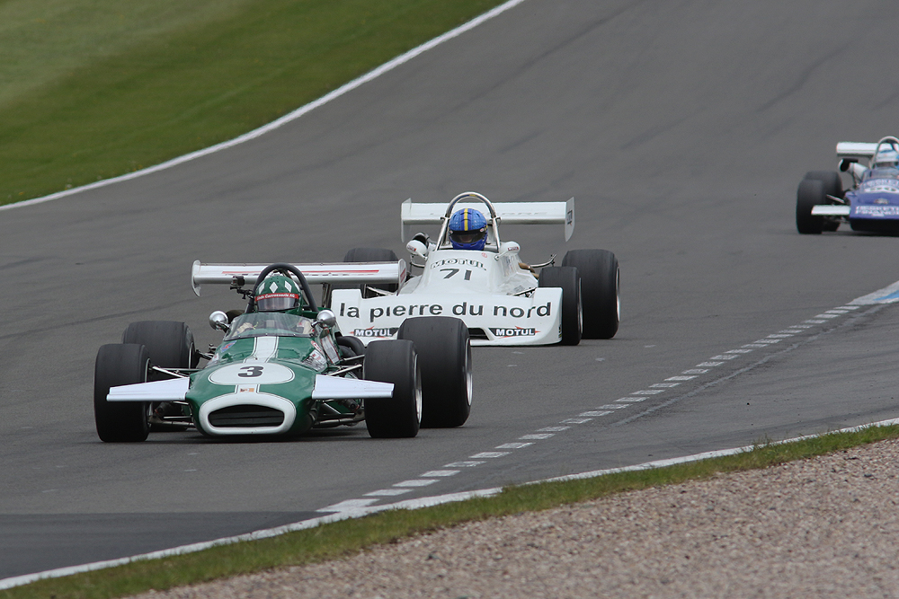 Double victories for James Dodd and John Sykes capped the HSCC race action during the seventh Donington Historic Festival (28-30 April).