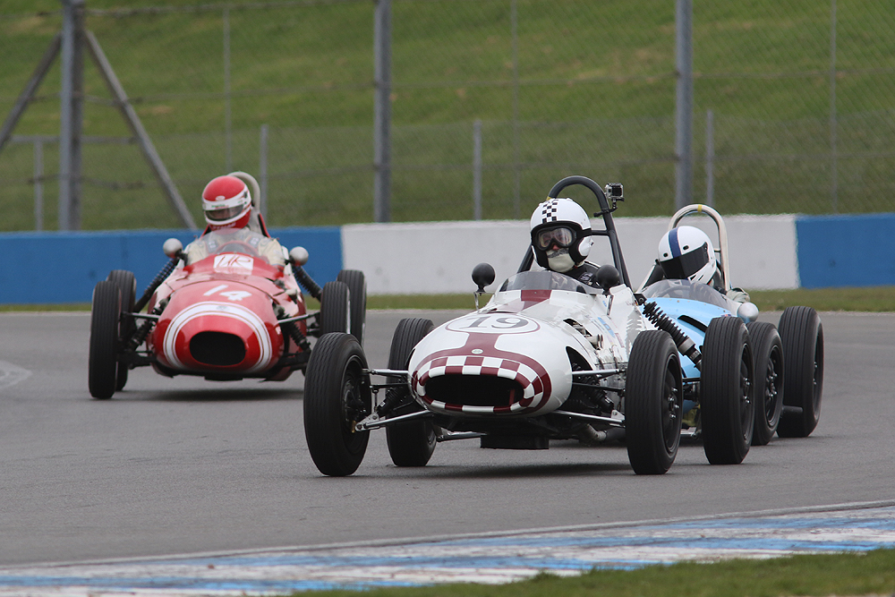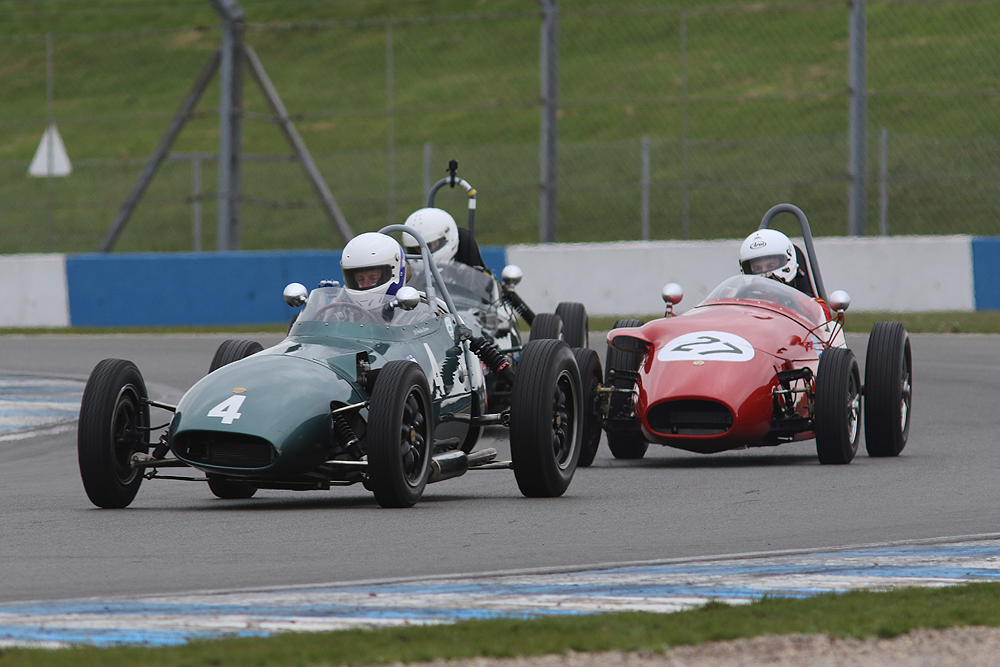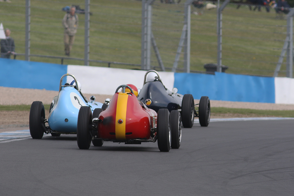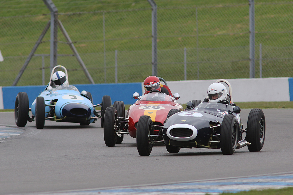 The rear-engined Formula Juniors raced just as hard although no one quite had an answer to the pace of James Murray’s Lola Mk5 in the first race. Teenager Benn Tilley made an impressive Junior debut with a strong second in Paul Smeeth’s Lotus 22 and gave chase to Murray as he pulled clear of the rest of an early battle for second.