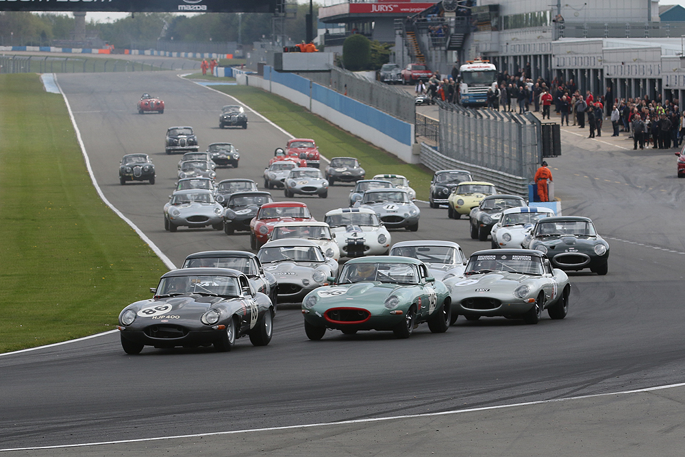 On Sunday, a 40-minute race got the 2017 Jaguar Classic Challenge off to a flying start with a packed grid of pre-1966 Jaguars including a huge array of E-types. Marque expert Gary Pearson was the class of the field but Ben Short gave strong chase despite his lesser experience, while father and son Graeme and James Dodd completed the podium. Ben Eastick’s glorious D-type was the leading non E-type in a class-winning 12th place overall.