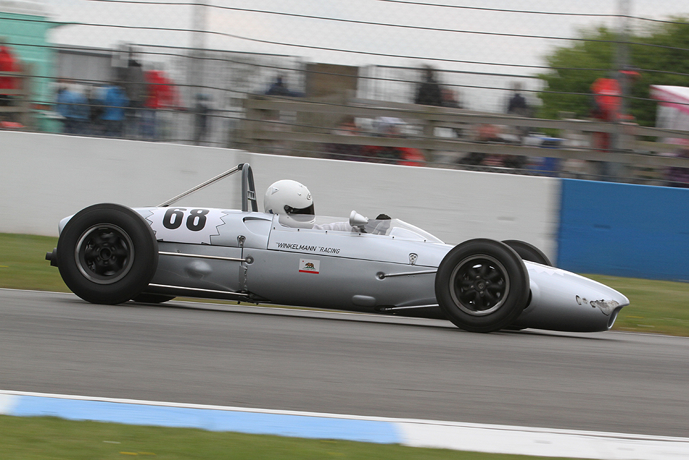 To bring the curtain down on the race weekend, the second rear-engined Formula Junior race ran at the end of Sunday afternoon and rising talent Tilley was on course for a spectacular win until an oil seal failed and put him out. While Murray recovered from a spin, John Fyda nipped ahead to take victory in his Brabham BT6.