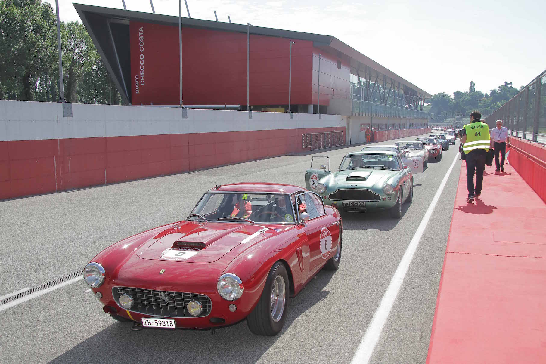 The first ‘coast to coast’ edition of Modena Cento Ore started officially on Wednesday, June 8th with the circuit race at the ‘Enzo e Dino Ferrari’ racetrack. The cars were lined up at the starting grid as in F1 races.