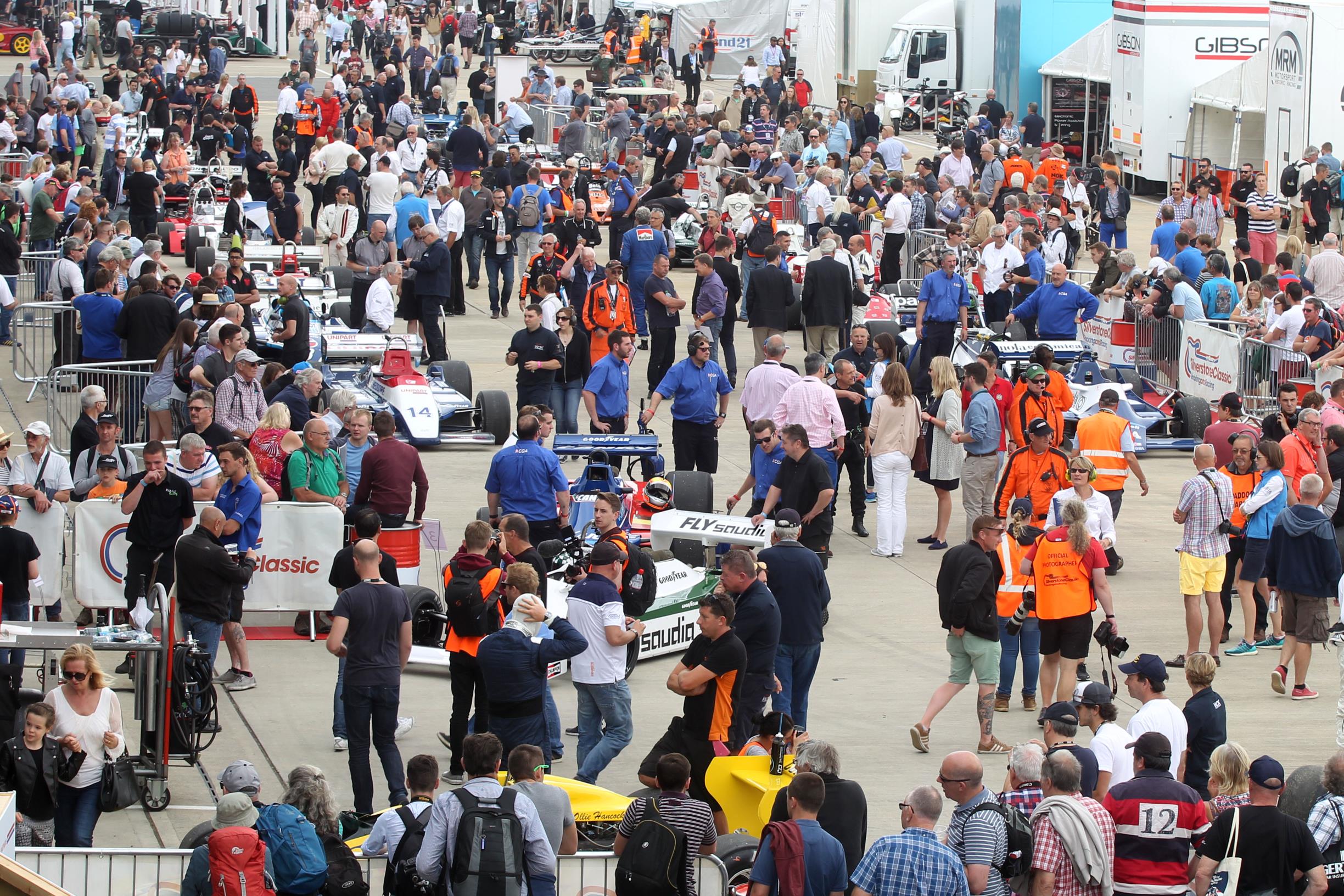 The pair of 25-minute FIA Masters Historic Formula One races are always two of the big draws at the Classic. The huge crowd was treated to the spectacle of a rolling start for 29 DFV-engined Formula One cars from the late 70s and early 80s.