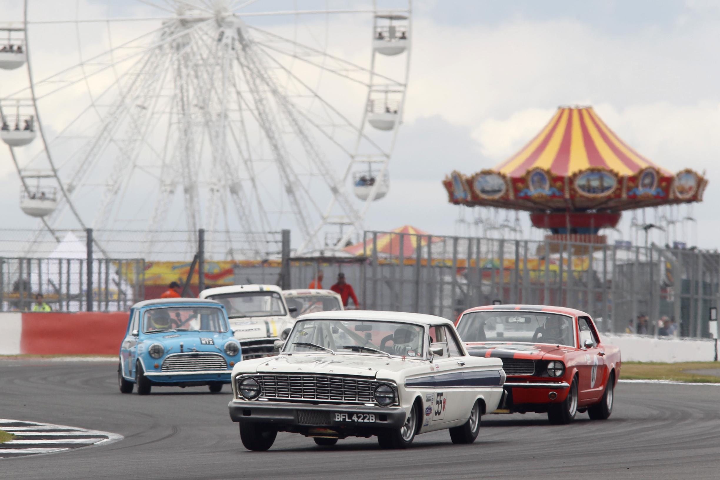 The third of Tin Top Sunday’s headline races was predominantly for mighty V8-engined US muscle cars from the sixties with a good splattering of giant-killing Lotus Cortinas and Mini Coopers adding to the entertainment.