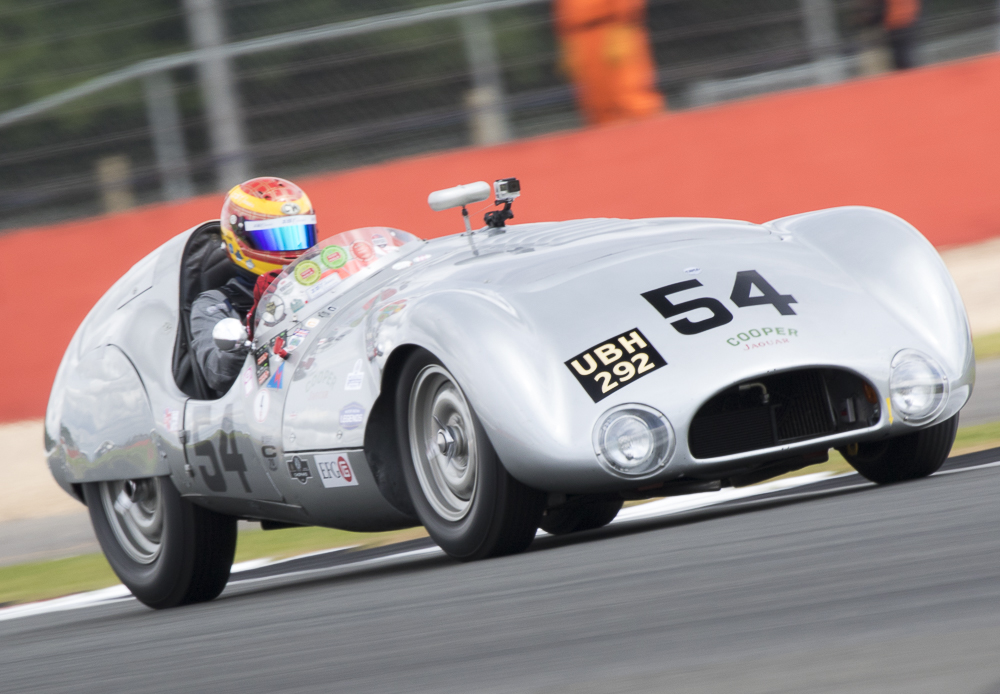 Pole-sitting Chris Ward in the Cooper-Jaguar was expected to take an easy victory in the 50-minute Woodcote Trophy showdown for pre 1956 sports cars after qualifying more than a second ahead of the opposition. But, come raceday, he was challenged all the way by Frederic Wakeman / Patrick Blakeney-Edwards in another of the Cooper-Jaguars.
