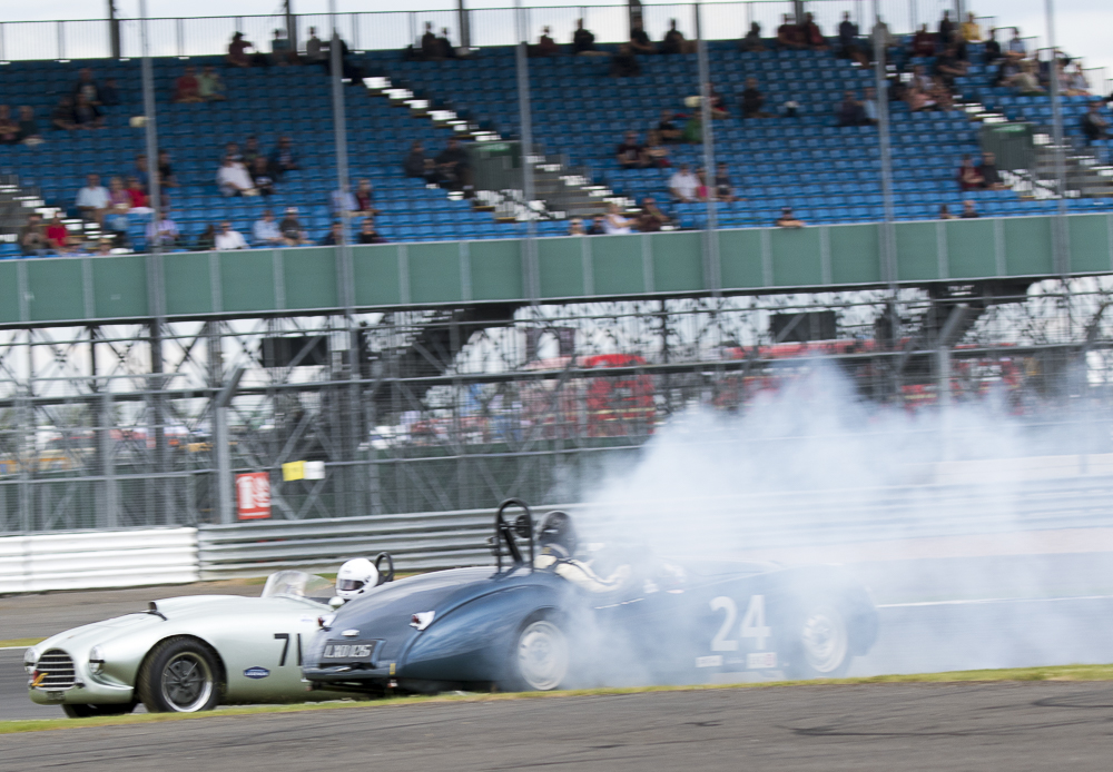 Bryant briefly nosed the Lotus ahead of the Ferrari but then dropped back to fourth after spinning on oil at Stowe. He fought his way back past the Listers back into second but the Lotus lost ground later on after Oliver handed over to father Grahame.
