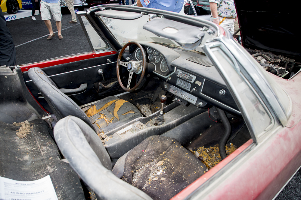 First coming onto the stage was the diminutive Austin-Healey Sprite Mk IV, perhaps while the Bonhams staff were still getting into their stride. Possibly some the audience were yet to get into the spirit of the occasion, too, for the car was snapped up for a modest $18,000 ($19.8k with premiums), where the estimate range was $25-40k. In British terms, the eventual take home cost was just above £16,000. Whilst not a bargain basement sum by any means, a quick look at the range of UK based Sprites and Midgets, currently for sale on line, shows the road-worthy examples averaging between six and eighteen thousand pounds. This time-warp, almost new, A-H Sprite with under 5,000 miles on the clock could initiate any auctioneer’s closing comment, “Very well bought, Sir!”