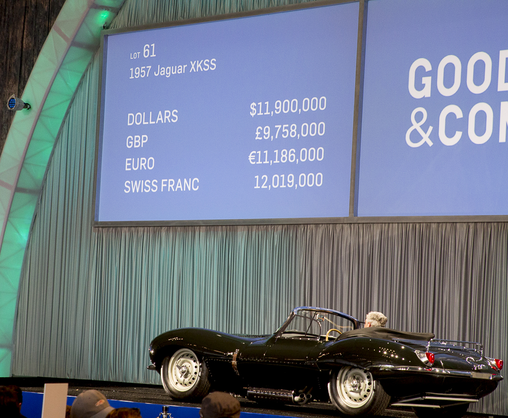 The second British-built sports car, reviewed at Auto-Addicts and on offer by Goodings, was the Jaguar XKSS, which began life as the short nosed D-type, XKD575. A late revision to the expected official estimate reduced the range from $16-18m, down to $13-16m. But they are still huge sums of money for a single car, despite its impressive racing history and current suitability for the most prestigious of ‘invitation only’ road touring events. The ascending offers both in the room and on the phones, whilst crashing through into eight figure territory, ultimately stalled at $11.9m. However, the ebullient Mr Ross was just itching to find a new buyer, as he hinted they were just one bid away from a successful sale. Perhaps after the current owner of XKSS ‘716’ drove it off the Amelia Island Concours exhibition lawns the following day, he may have been content to negotiate and ultimately hand the keys over to someone else, for a lower than hoped for figure