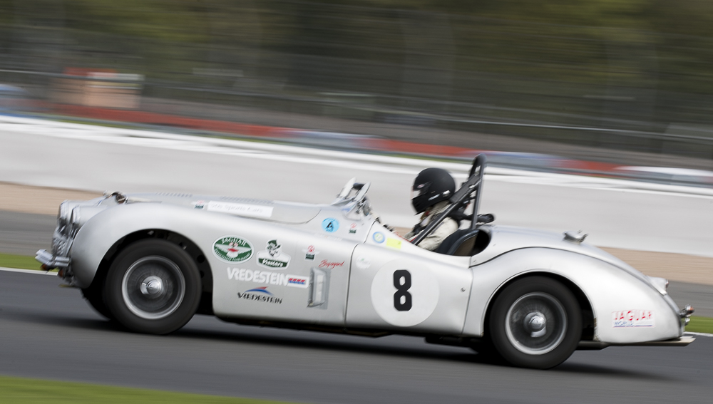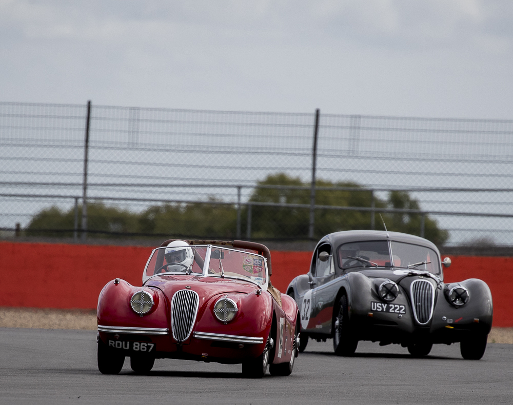 In the final laps the lead three closed up, and Ure was right with Ditheridge as they crossed the line but this was the order they finished. Rob Newall was first of the XK Challenge runners home and seventh overall in his XK120, having run sixth overall for much of the race on the tail of the Bond and Ellis dice. Andrew Wenman and Paul Kennelly rounded out the Jaguar podium and also the top ten overall, Wenman having passed Kennelly on lap 15.