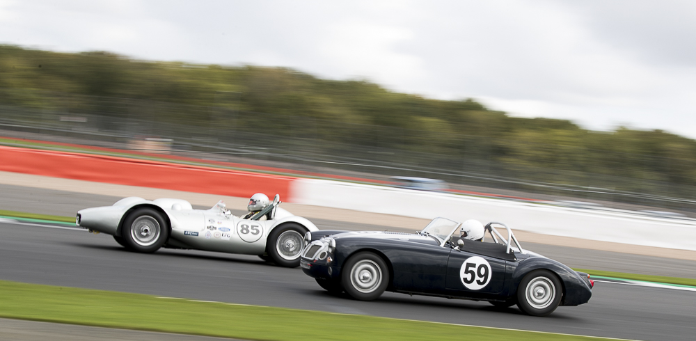 The AMOC ‘50s Sports Cars including the Vredestein JEC XK Challenge opened the day’s racing and on lap one the Cooper Bristol of John Ure slipped by poleman Dan Crowton’s Lotus at Luffield to take the lead and later the win, Crowton losing out again a lap later as the Cooper Monaco of Tony Ditheridge, up from fifth on the grid, moved into second with the MGA of Max Cawthorn moving into third.
