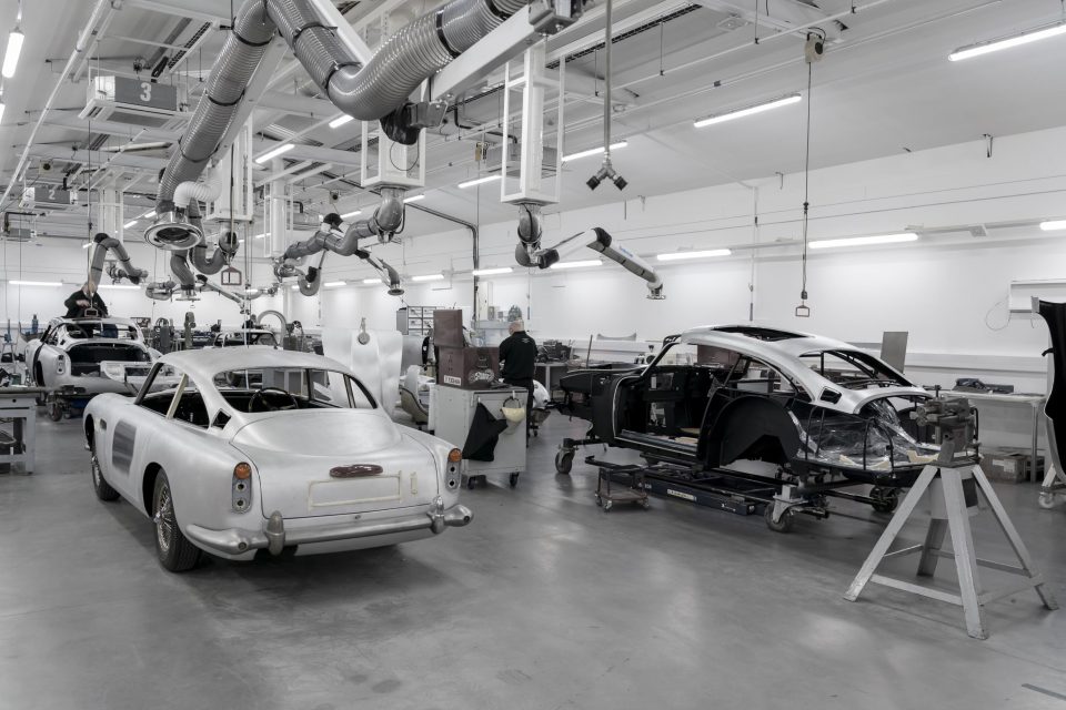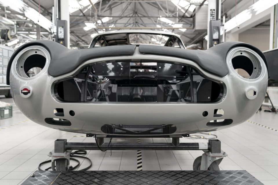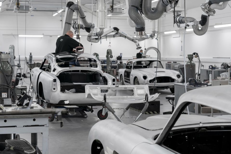 Aston Martin DB5 production resumes after 55 years as build work begins on DB5 Goldfinger Continuation cars at Aston Martin Works.