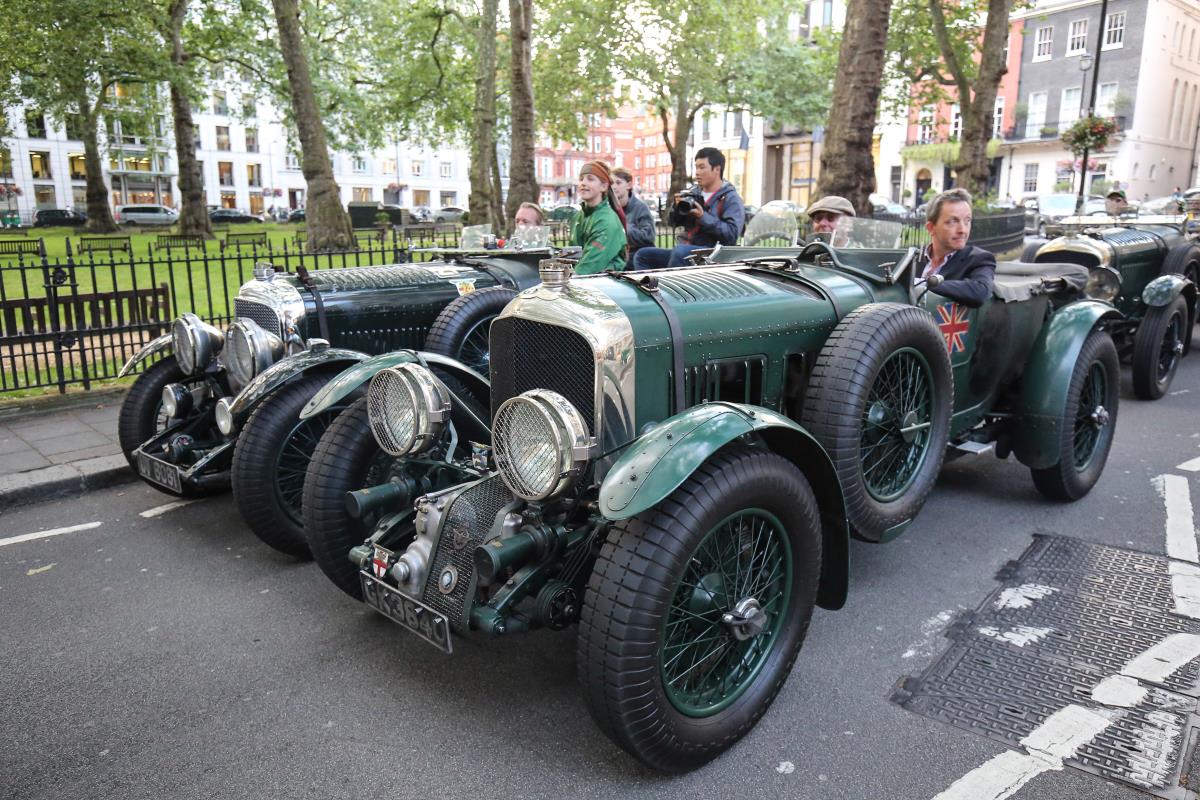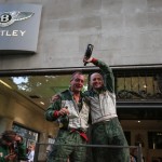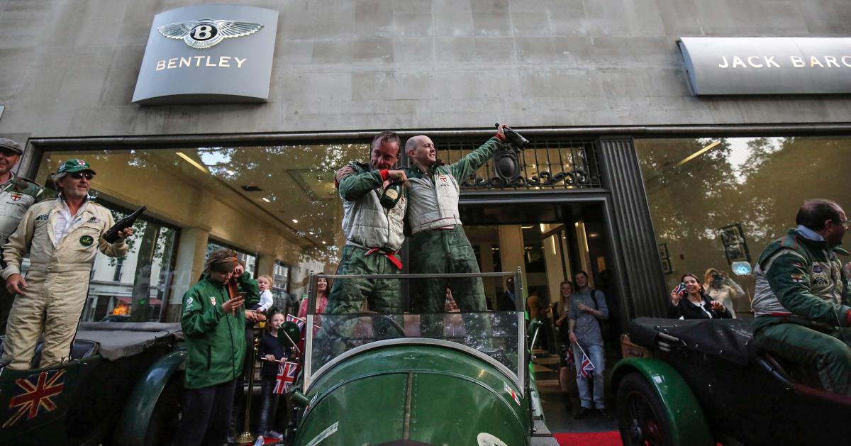 As many as 19 vintage Bentleys and more than 200 guests turned up to mark the occasion, with the stunning cars parading around Berkeley Square, much as the original Bentley boys did back in the cars’ heyday. The spectacle brought a corner of West London to a triumphant and happy halt for a short period, as the vintage cars roared around the square, with onlookers waving flags and cheering the drivers as they went. The five racing cars then lined up outside the front of Jack Barclay for a triumphant photoshoot, spraying champagne to celebrate a successful trip to Le Mans.
