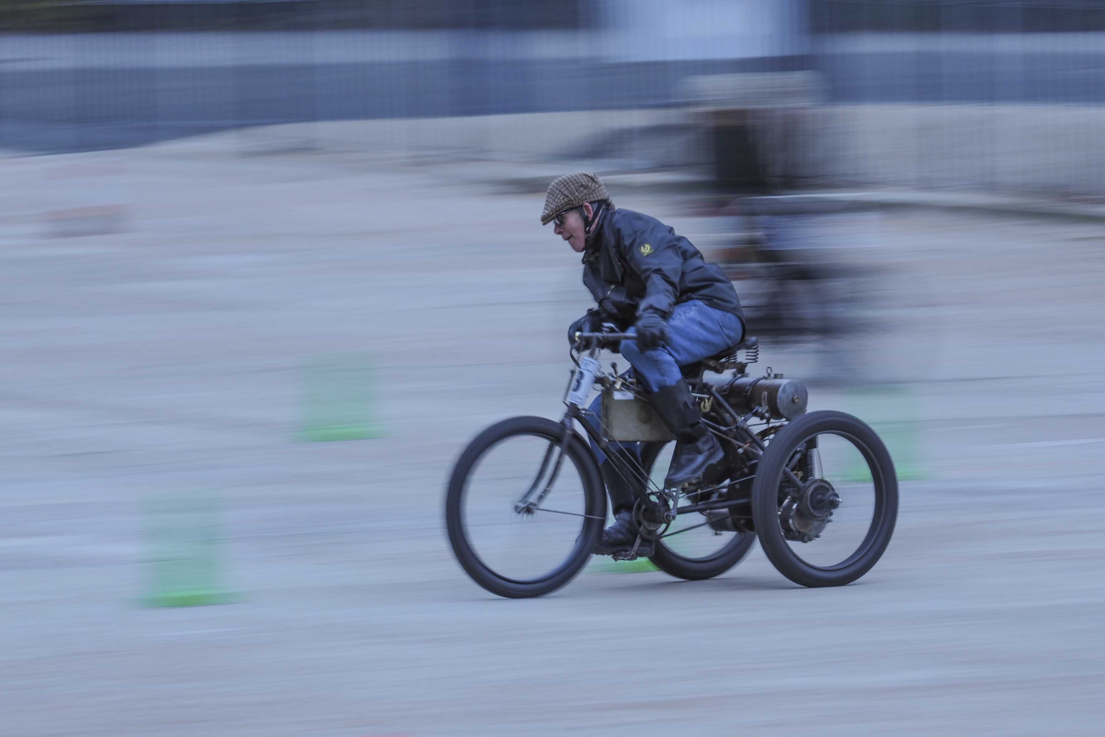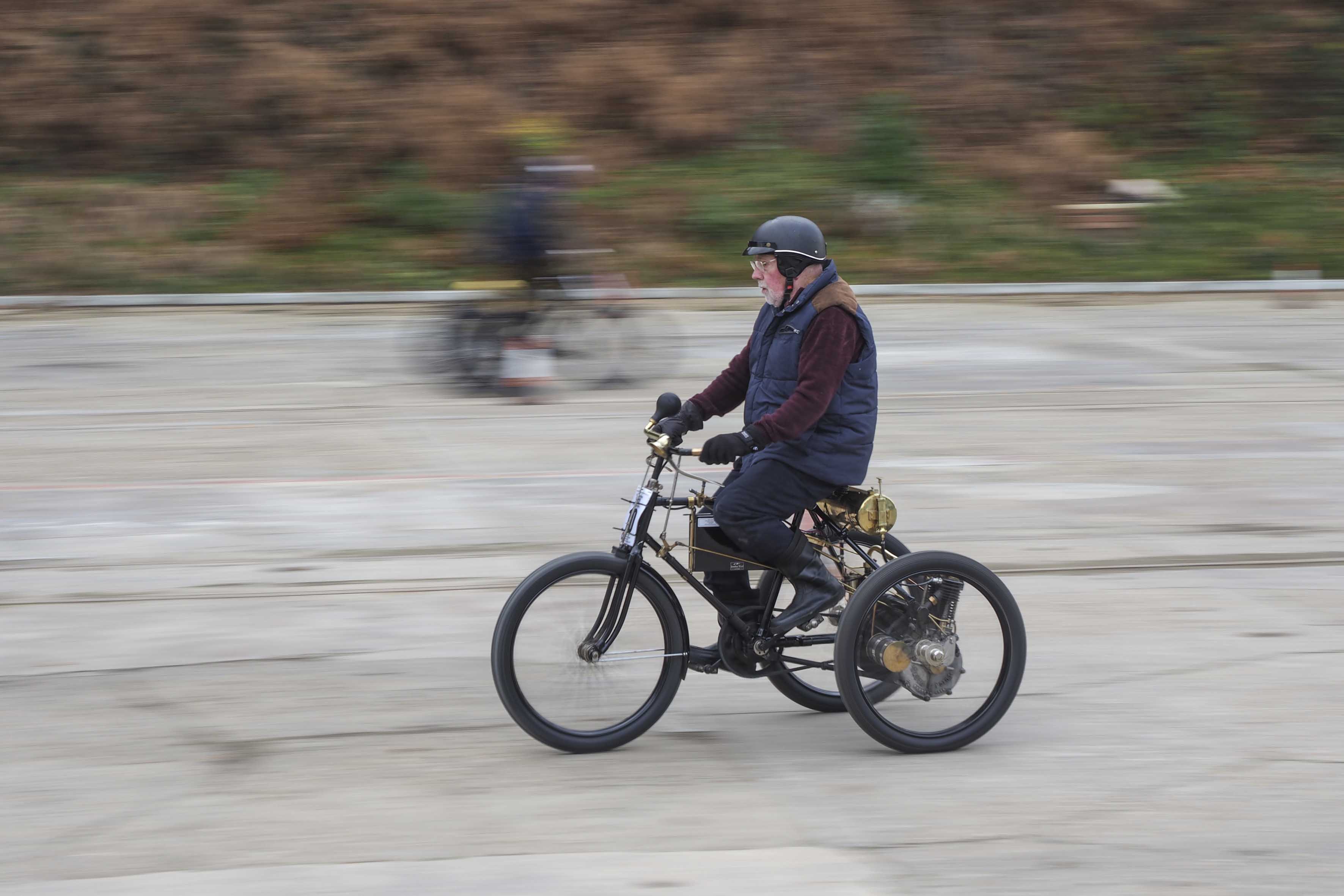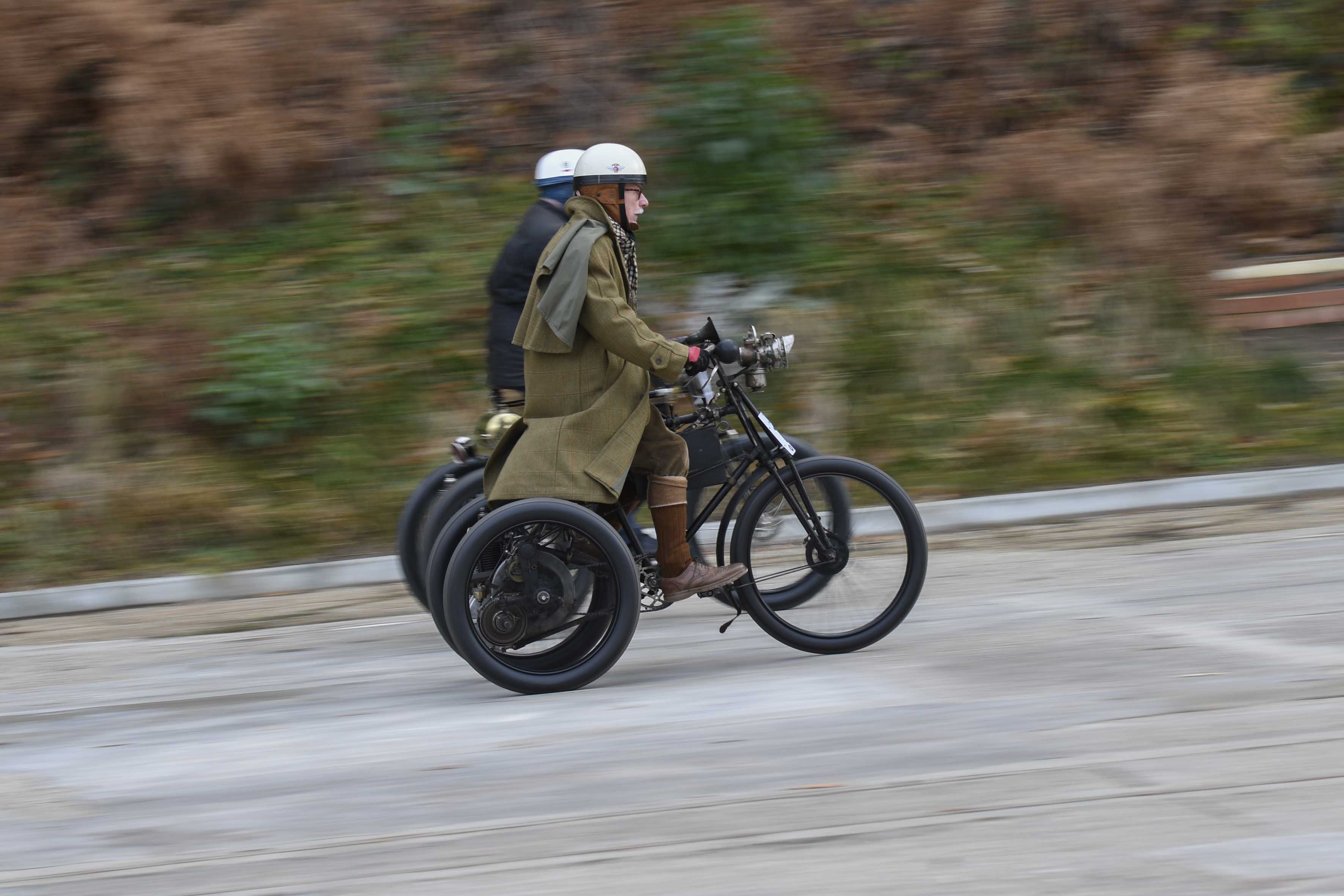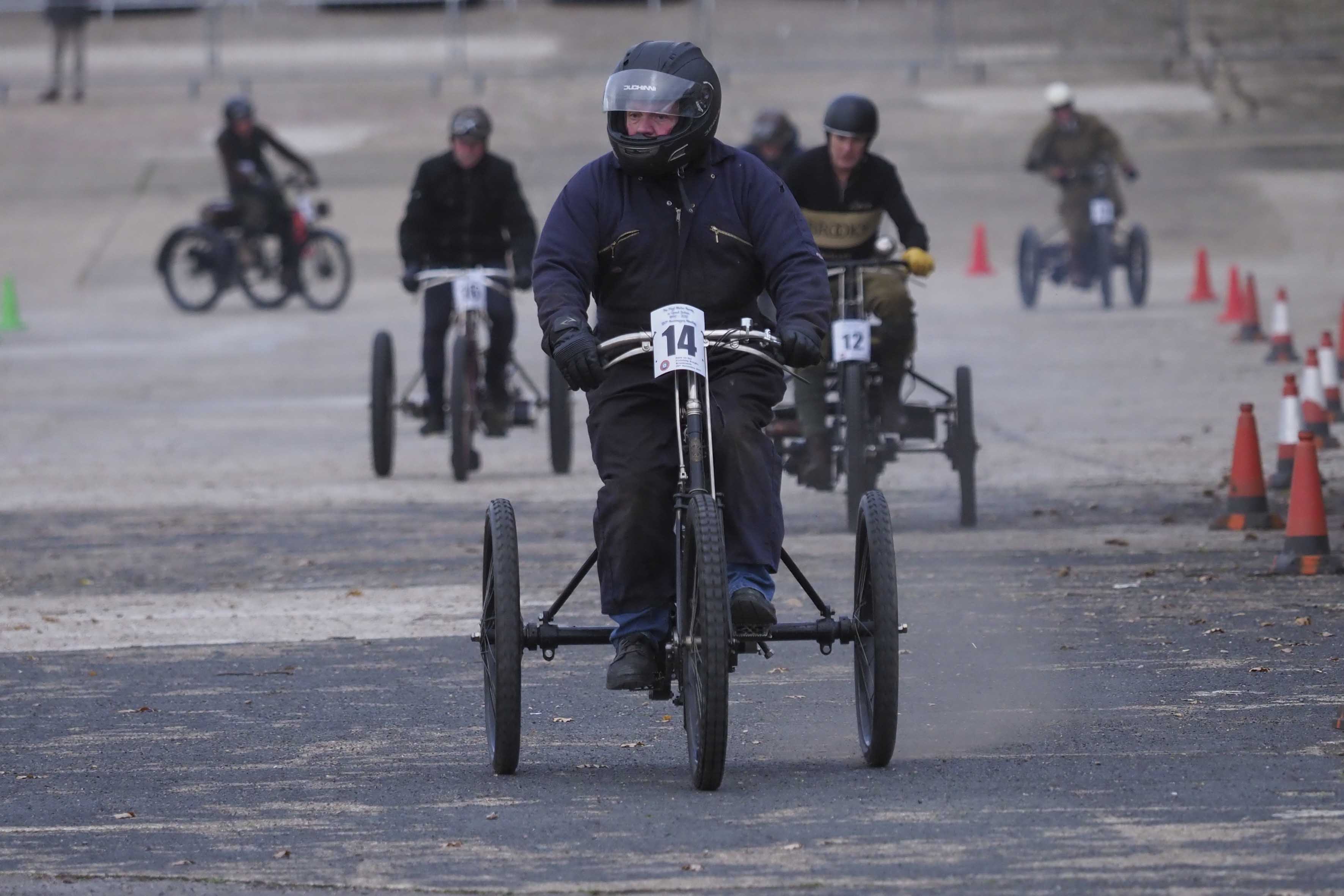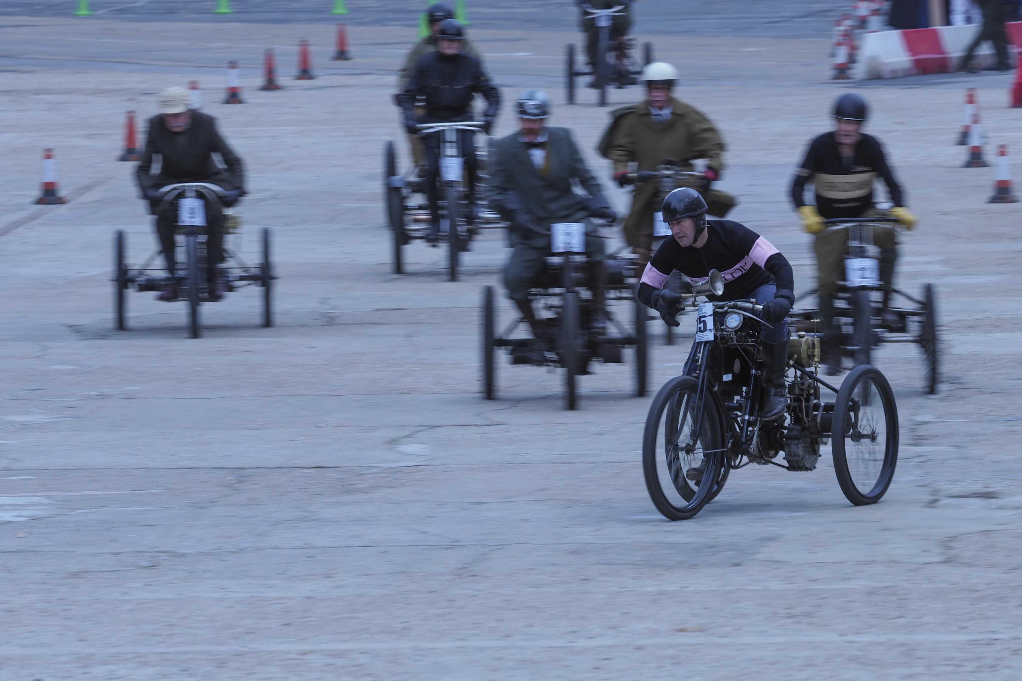 “All the participants rode trikes. Given each had around 1 1/2 hp, they were not fast by conventional standards, but they were still trying! The commentator did add that they all employed a Victorian version of supercharging to assist their performance and this was otherwise known as peddling!”