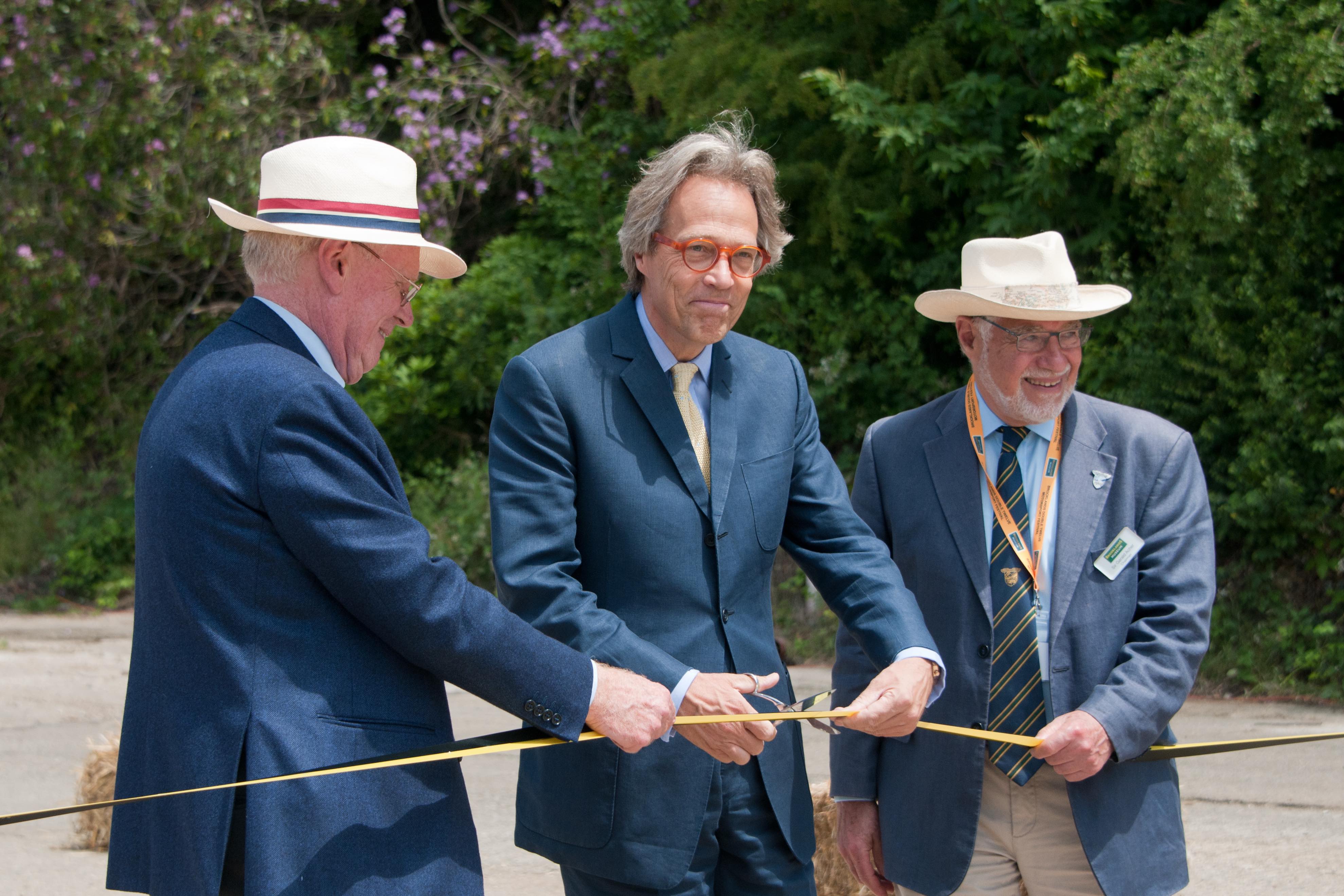 The restored Finishing Straight at Brooklands was officially opened by Lord March on Saturday 17th June 2017. It was exactly 110 years ago to the day since the original opening parade which was recreated  by Historic Brooklands cars thundering up the Finishing Straight.The scissors used by Lord March to cut he ribbon were the same ones used 110 years ago on the original opening parade. It was an historic and emotional occasion to celebrate the completion of the first phase of the £8 million ‘Brooklands Aircraft Factory and Race Track Revival Project’ The Brooklands Double Twelve Motorsport Festival continued through the weekend.