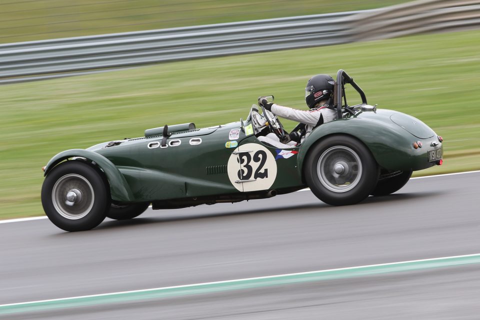 Oliver Llewellyn won the first race in some challenging conditions and with a developing misfire, while dad Tim stepped in to do the second race and won after a wonderful battle with the Lola Mk1 of Alex Montgomery. In the opener, Oliver was able to power clear of the Kurtis of Chris Keen on a slippery track. But later, Tim could never escape the clutches of Montgomery and it was close all the way to the flag as they traded the lead many times. Their shared expressions after the race showed how much they had both enjoyed the battle.