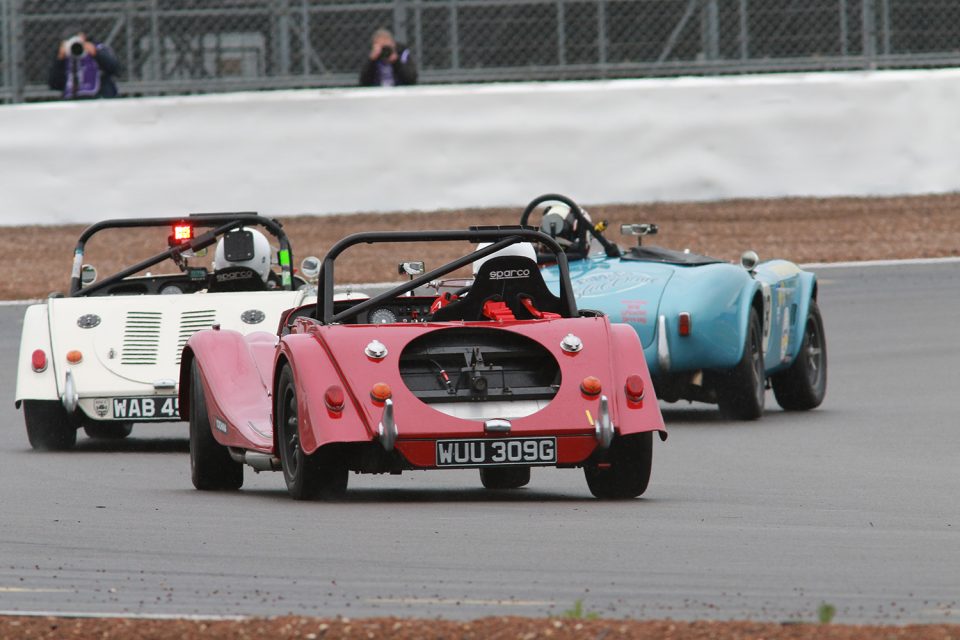 A damp track made conditions tricky for the Historic Road Sports pack and played to the wet weather strength of Robin Pearce, who worked his Morgan Plus 8 to the front of the pack ahead of Kevin Kivlochan’s AC Cobra, the Morgans of Peter Garland and John Shaw and the Lotus Elan of John Davison.