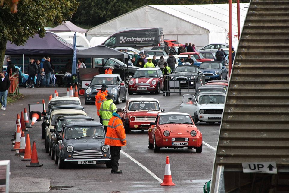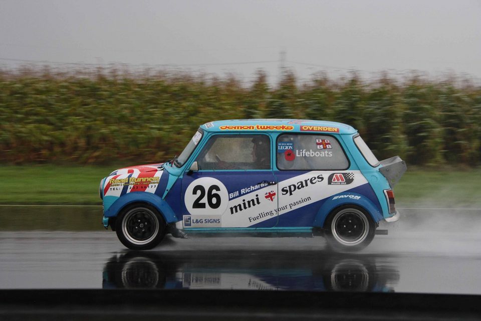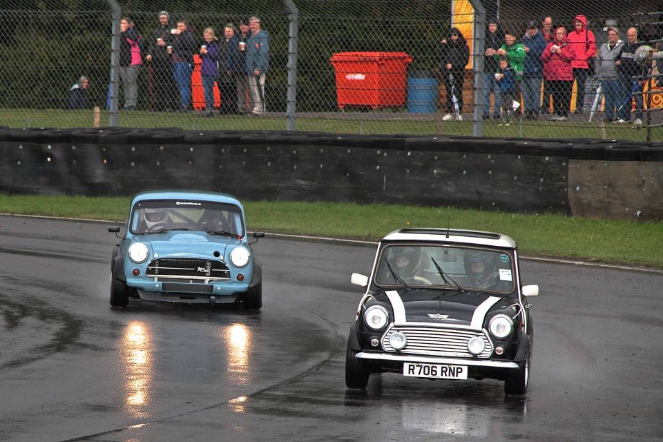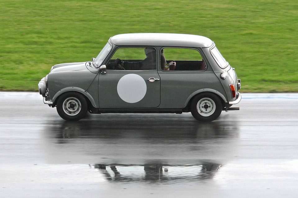 This event runs like a track day, allowing road and competition cars on track in batches throughout the day. With this year being the Mini’s 60th birthday there was a good turn out for the Action Day despite heavy autumn showers. Castle Coombe is a fast circuit with a sting in its tail at Quarry Corner and the combination of standing water and the Mini’s lift-off oversteer kept drivers and spectators entertained.