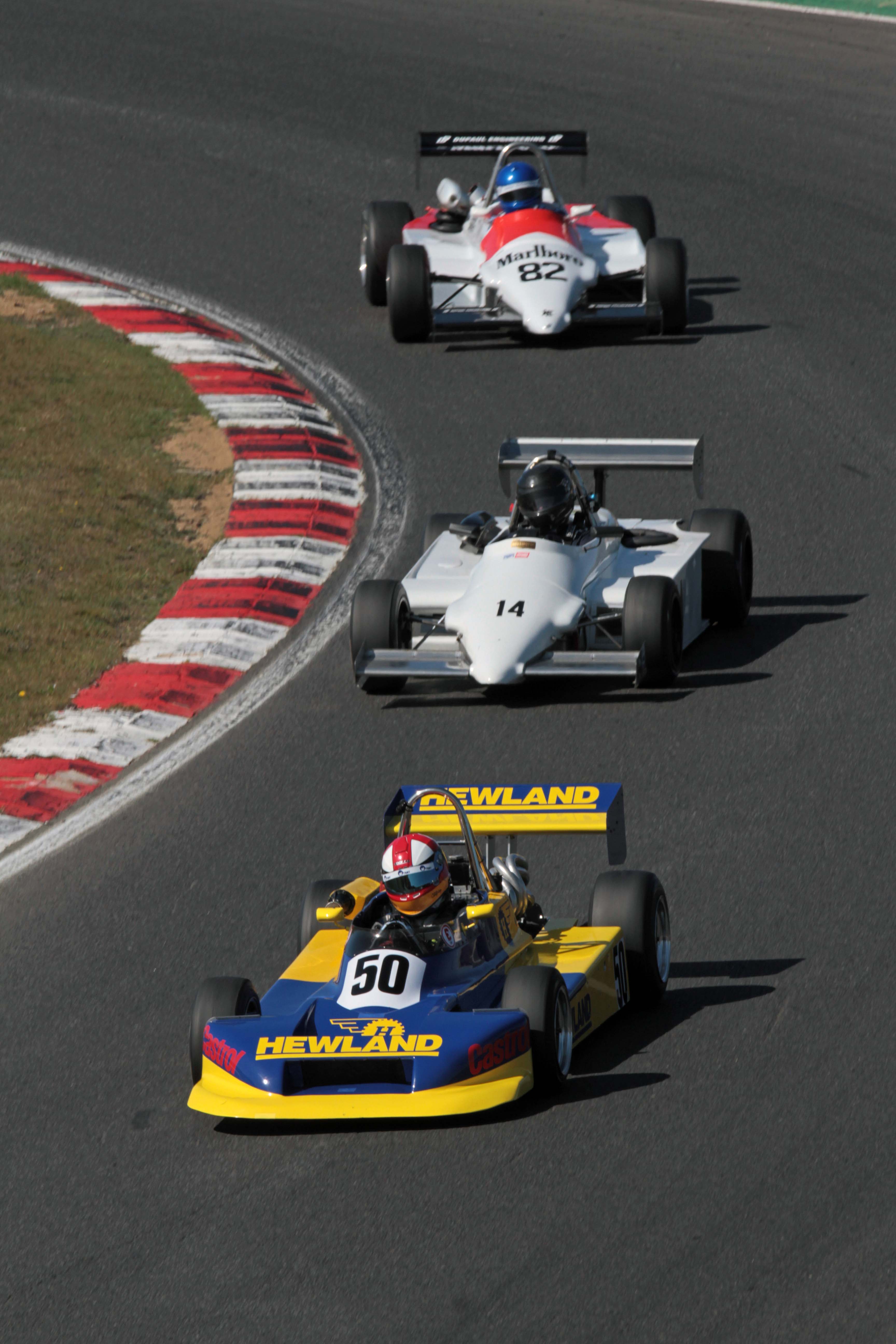 In the opening Classic F3/Classic FF2000 race, Langridge was under constant attack from Steve Maxted (Ralt RT3) and it got just too close when Maxted bent a front fin against the back of the March under braking for Druids. Two laps later the fin came off completely and the hampered Maxted slipped back into the clutches of the battling RT3s of Paul Smith and David Thorburn. Maxted held on, but worse was to come in the second race.