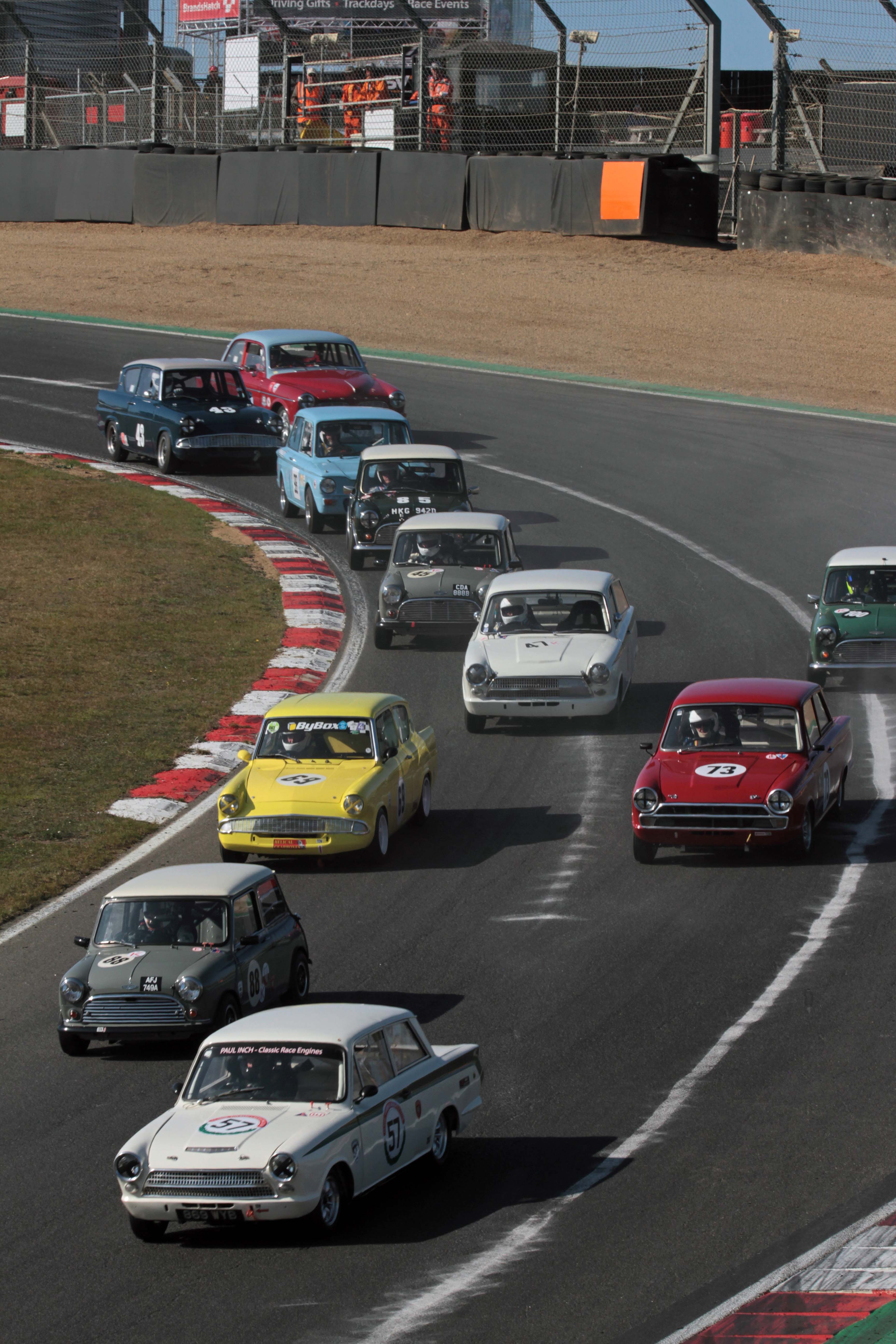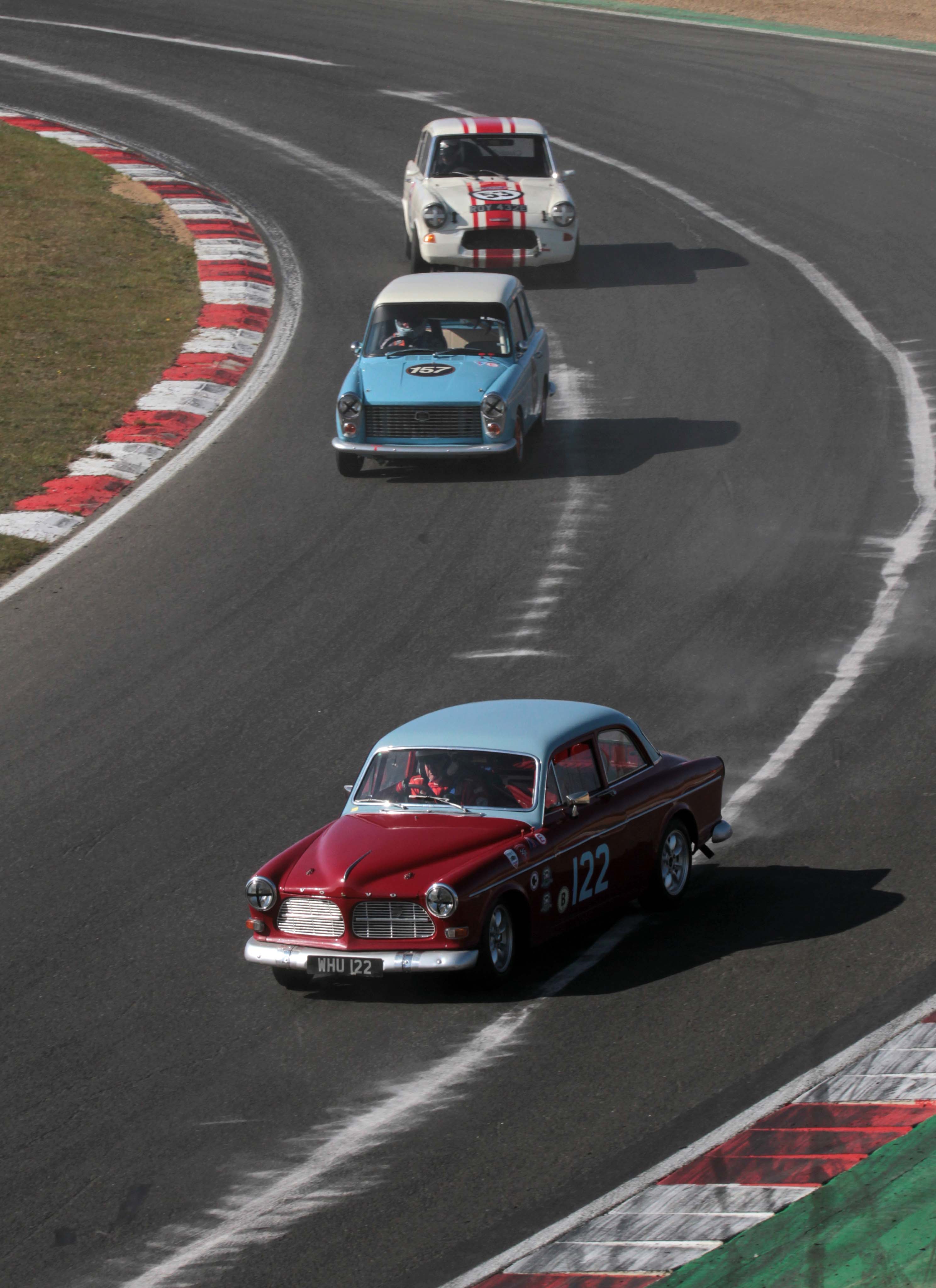 Mark Martin (Lotus Cortina) clinched victory in both Historic Touring Car races but left it late in the second race after passing Richard Belcher at Clearways on the final lap when the former leader went in just too deep. “I didn’t think that through,” said Belcher. “I just went into Clearways a bit too quick,” he added after withstanding considerable pressure until the final corner of the race. Roger Stanford (Lotus Cortina) went after the two leaders in both races as good battles rages all the way down the pack.
