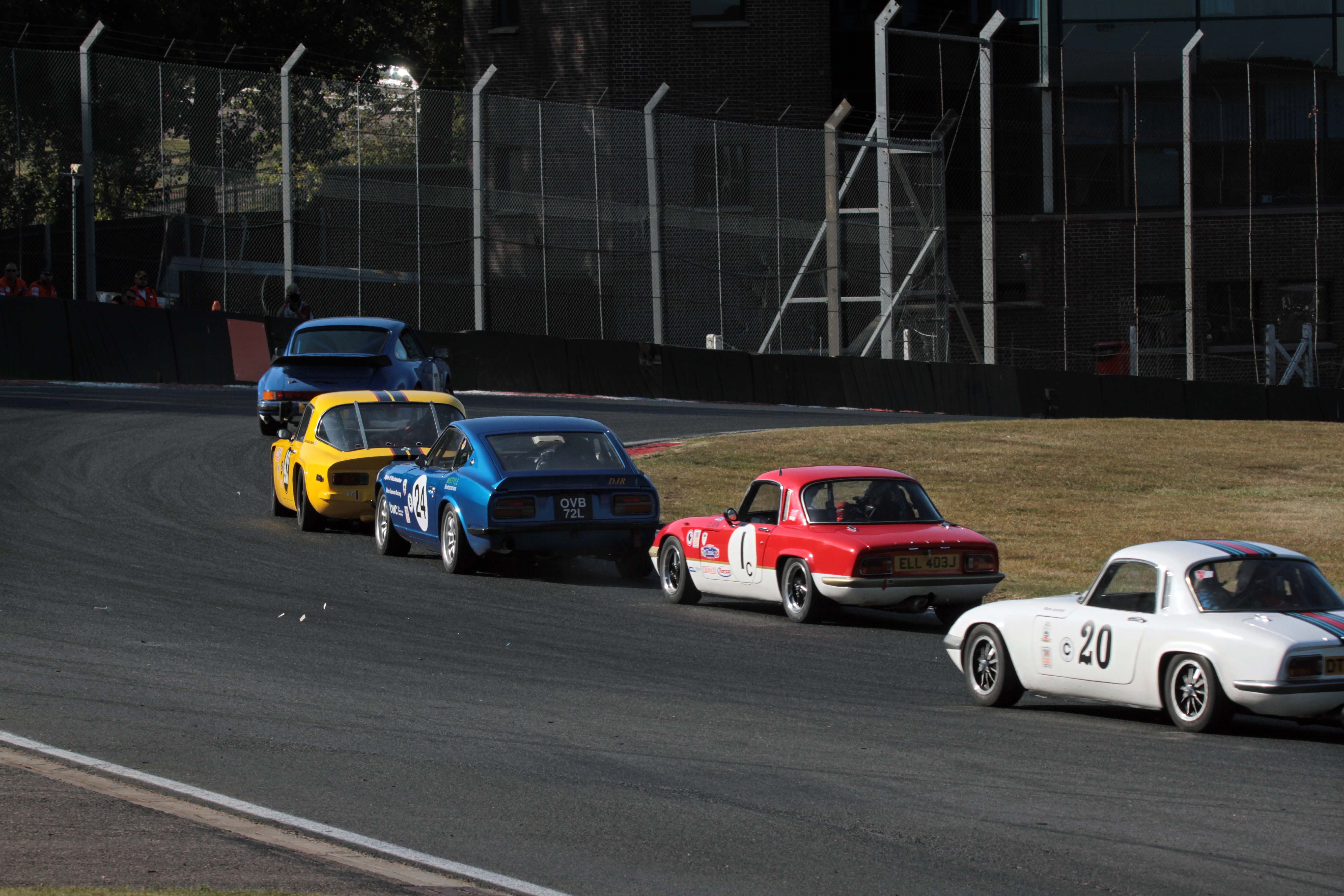 The pair of 70s Road Sports races were tremendous as five cars contested the lead. In the opening race, Charles Barter managed to work his Datsun 240Z to the head of the pack as Dave Karaskas, with brake issue from qualifying resolved, had his best race in the championship so far to take second in his TVR 3000M. John Williams (Porsche 911), championship leader Jeremy Clark (Lotus Elan) and Mark Leverett (Elan) made up the rest of the closely-matched pack.