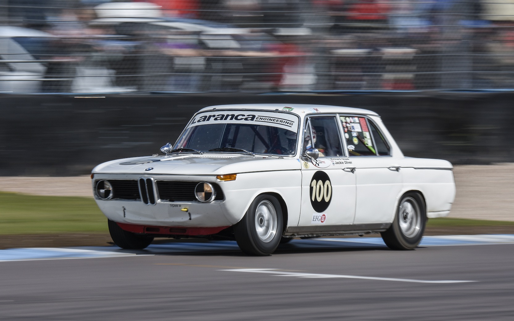 Ex-Formula 1 driver Jackie Oliver shared a BMW 1800 Ti/SA with Richard Shaw in the U2TC race, taking second place behind the Alfaholics Alfa Romeo Giulia Sprint GTA of Andrew and Max Banks, with a quintet of Ford Cortinas (four Lotus Cortinas and a Consul Cortina) in hot pursuit.