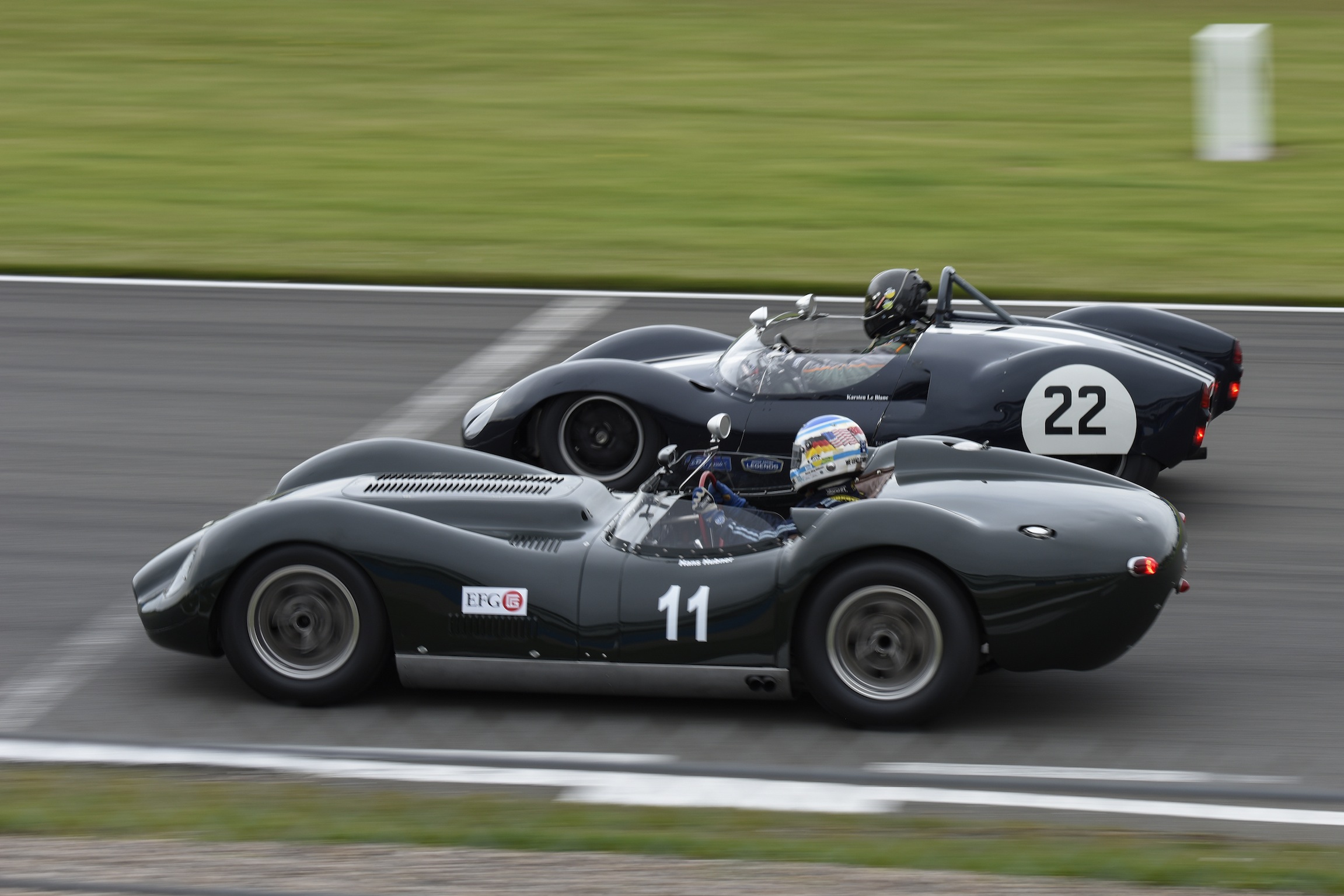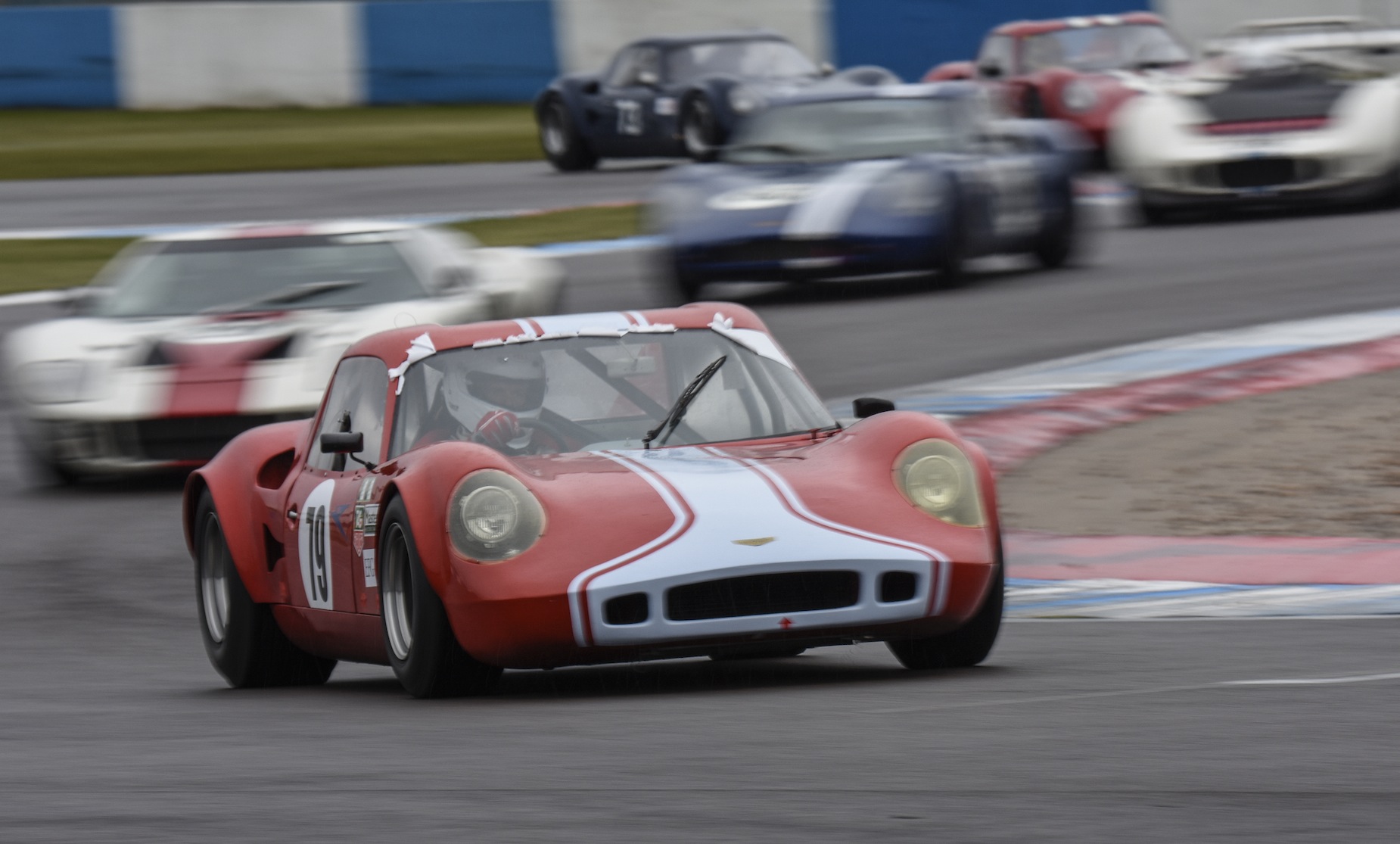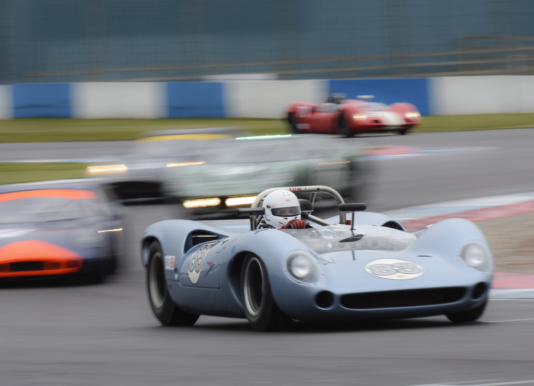 The weather did its best to make things even more interesting on the Saturday afternoon and Sunday morning, with rain and cold wind causing many a spectator to remind themselves that they were there for the love of the sport. Saturday evening’s 1000 km ‘mini-enduro’ saw a fabulous grid of World Sportscar Championship cars such as Lola T70s, Ford GT40s and no less than 11 Chevrons race into the dusk on a decidedly slippery track. The Broadley Lola T70 3B of Chris Ward and Paul Gibson took the chequered flag after 150 exhilarating minutes.