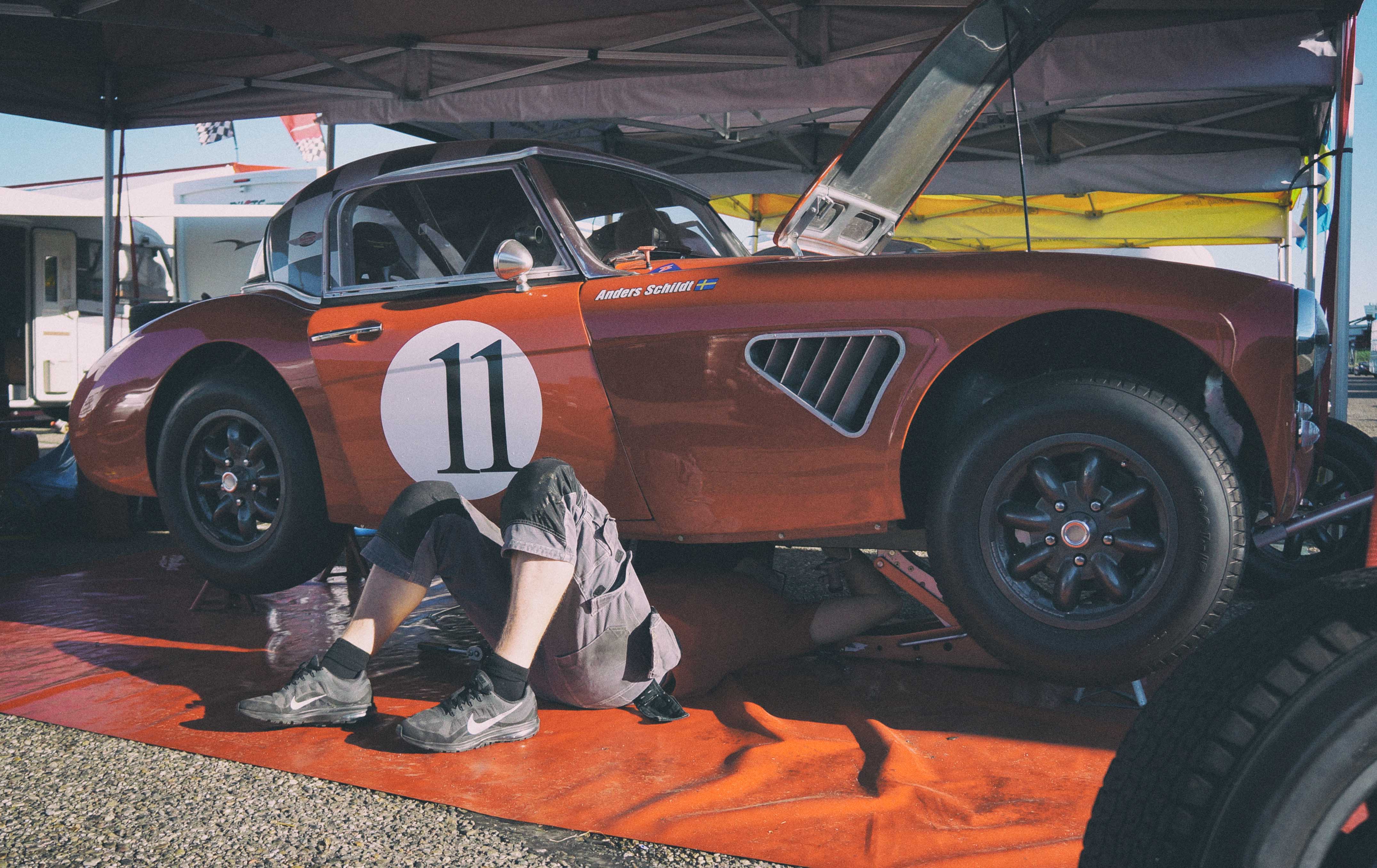 In race one, Jeremy was hot out the block as the pack of Austin Healey 3000s thundered into the first corner. Anders stuck with Jeremy in the early laps, closing the gap to .05 of a second, before gearbox troubles saw him drop back to finish second some 16 seconds behind at the final flag. Oliver Chatham was first of the Chatham brothers to take the wheel, and kept the leaders honest to finish in third place, with Jaap Sinke in fourth and Mark Pangborn rounding out the top five.