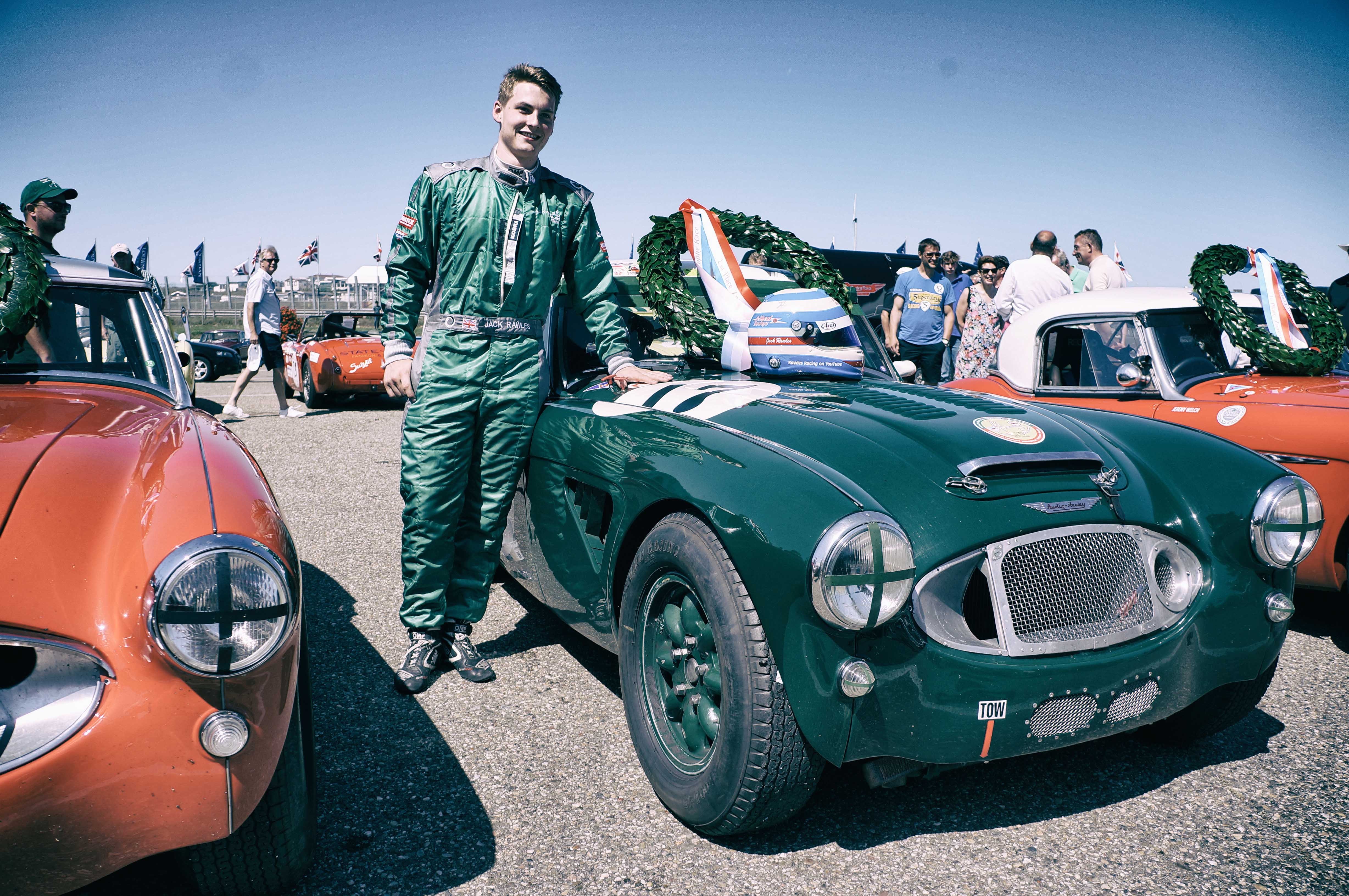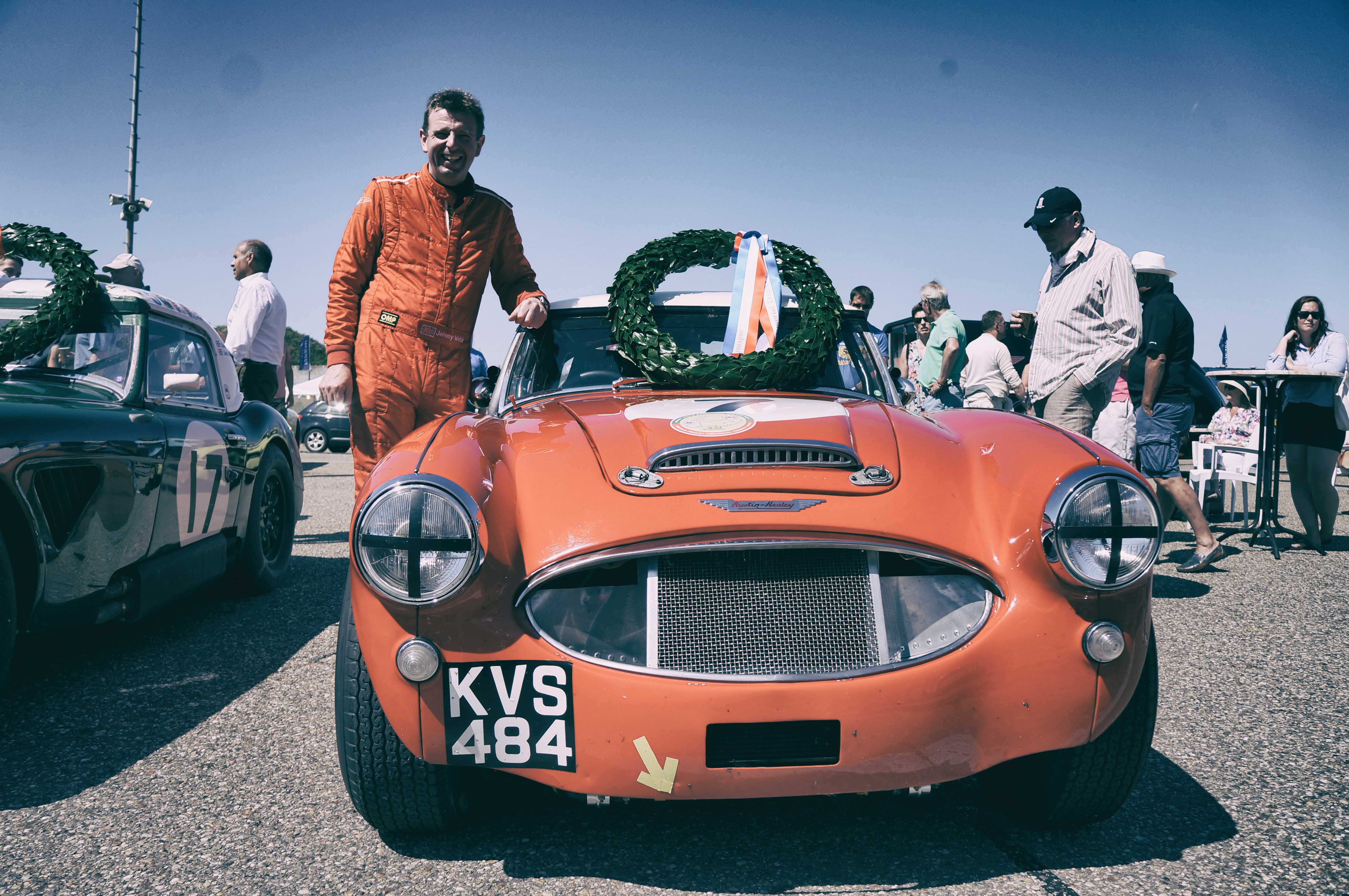 Jeremy Welch raised the Donal Healey Memorial Trophy after a commanding performance saw him take two wins in the double header Healey race. There were plenty of challengers though, as the European Healey community turned up in force to support two 30 minute races.