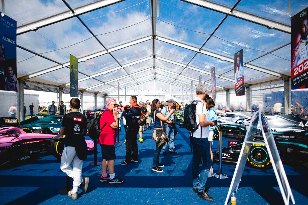 • Alpine, Aston Martin, McLaren, Mercedes, Red Bull and Williams racers on show