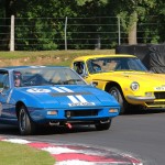 Charles Barter (Datsun 240Z) repelled the Lotus Europa hordes in the 70s Road Sports Championship round and when poleman Will Leverett retired his Europa, James Dean took up the challenge of the Datsun. Up into a tremendous third place came Tom Bradshaw, subbing in the Porsche 928 for Richard Attwood who was busy at Goodwood.