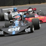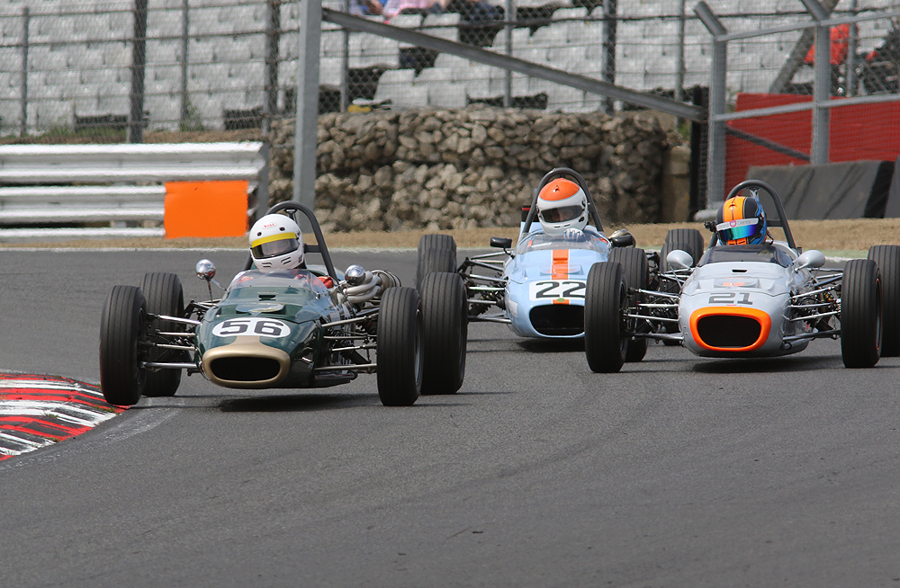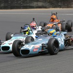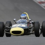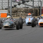 On Saturday, Max Bartell headed the concurrent Classic F3 pack in his ex-Keegan Chevron B34 while fellow Historic FF1600 racer Cameron Jackson was second in his rare Euroracing 101. Bartell added a second win on Sunday when the F3 pack shared the grid with Classic Racing Cars though he had to battle ahead of Richard Trott’s Chevron B43. Martin Anslow’s Brabham BT21 headed the CRC contingent from an elated Lorraine Gathercole (March 712).