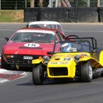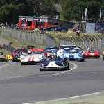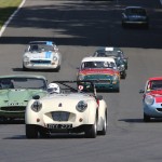 Unfortunately the Guards Trophy race ended early after Mark Colman’s Chevron B8 crashed heavily at the top of Paddock Hill Bend. Mark was hospitalised with a broken ankle after an apparent mechanical problem sent the car into the barriers. Charles Allison’s B8 was ahead at the point results were taken though in the early laps before the pit stop window opened, Chris Goodwin (Lotus 23B) battled with the Elva Mk7 of Max Bartell and Ben Mitchell.