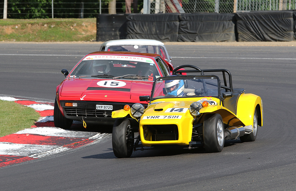 The Historic Touring Car race was a crowd-pleaser at the end of Saturday as Terry Drury (Ford Falcon) edged clear of Warren Briggs (Ford Mustang). Behind, championship newcomer Peter Chambers drove a fine race to fend off fellow Lotus Cortina pilots Ben Winrow and Richard Belcher while the Imp battle was tremendous as Steve Platts just bettered David Heale and Simon Benoy.