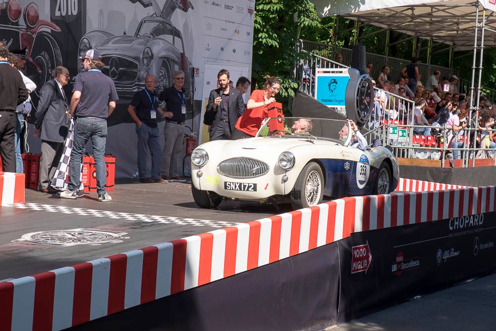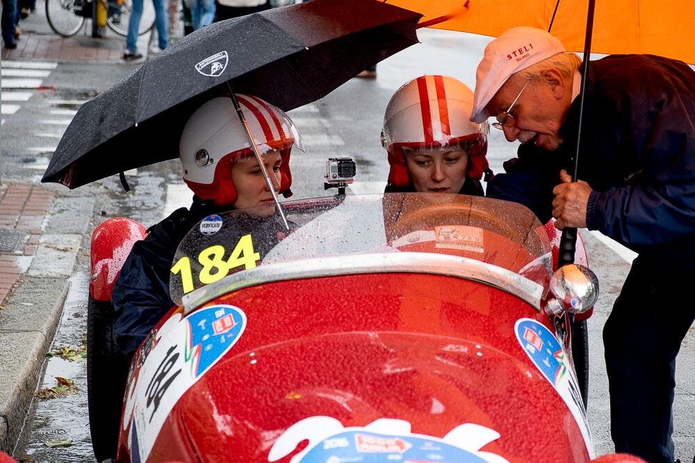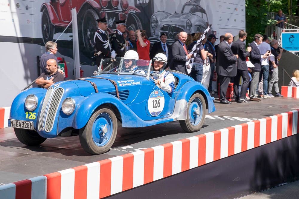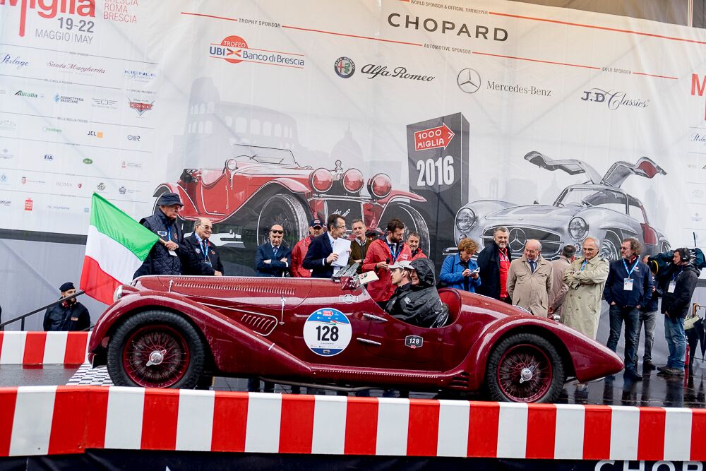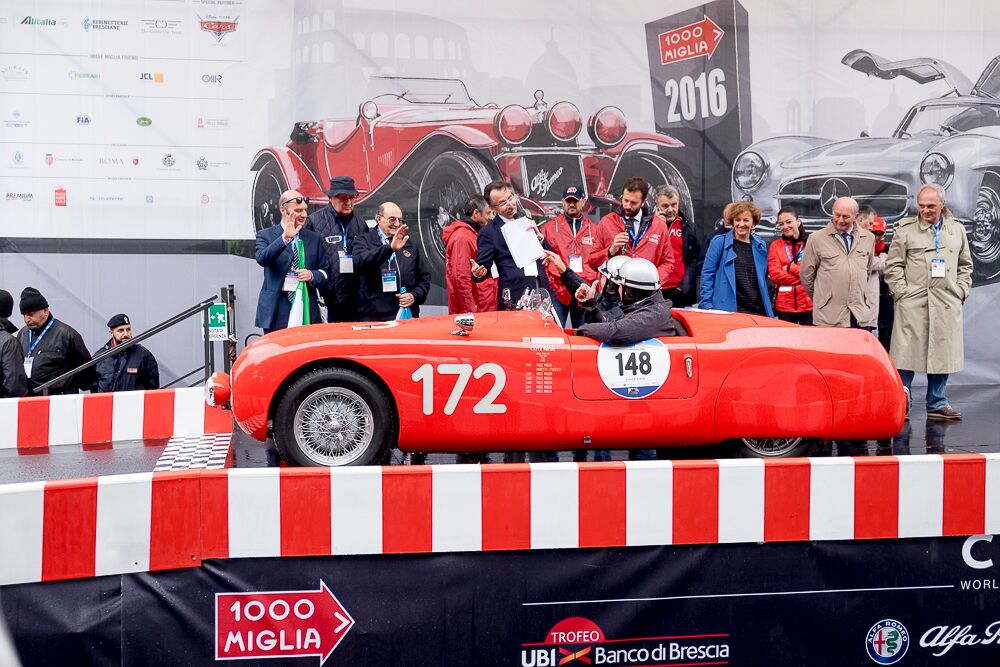 The race began in Brescia and involved four legs: the first was Thursday, 19 May, with arrival in Rimini. The second leg included Rome on Friday, 20 May. On Saturday, 21 May, the Freccia Rossa reached Parma, the third stop on the 2016 race course of the famous Mille Miglia. Sunday, 22 May, upon arrival in Brescia after the fourth leg, the chequered flag finally was waved for 450 classic automobiles. Before arrival at the finish line, the Freccia Rossa involved some timed trials in the Monza Autodrome. Victory belonged to the team of Maurizio Colpani and Pietro Giuseppe Grumelli, in a Bugatti T37. Second place went to Tiberio Cavalleri and Cristina Meini, at the wheel of a Lancia Lamda, and third place went to Kioto and Junko Takemoto in a Bugatti T 40. The winners received their awards from Ivan Capelli, President of ACI Milan.