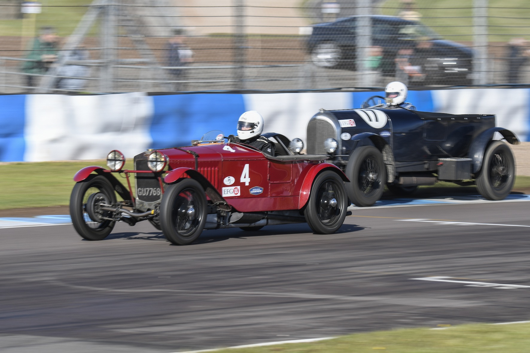 Classic motorsport fans were treated to a vast range of competition cars from the 1920s up to the 1990s, campaigning in a challenging range of climatic conditions ranging from torrential rain and hail to high winds and even a scattering of snow! Happily these were not constant throughout the weekend, and there was plenty of sunshine to show Donington off in all its park-like beauty; and the frequently wet track made for some very interesting racing indeed.