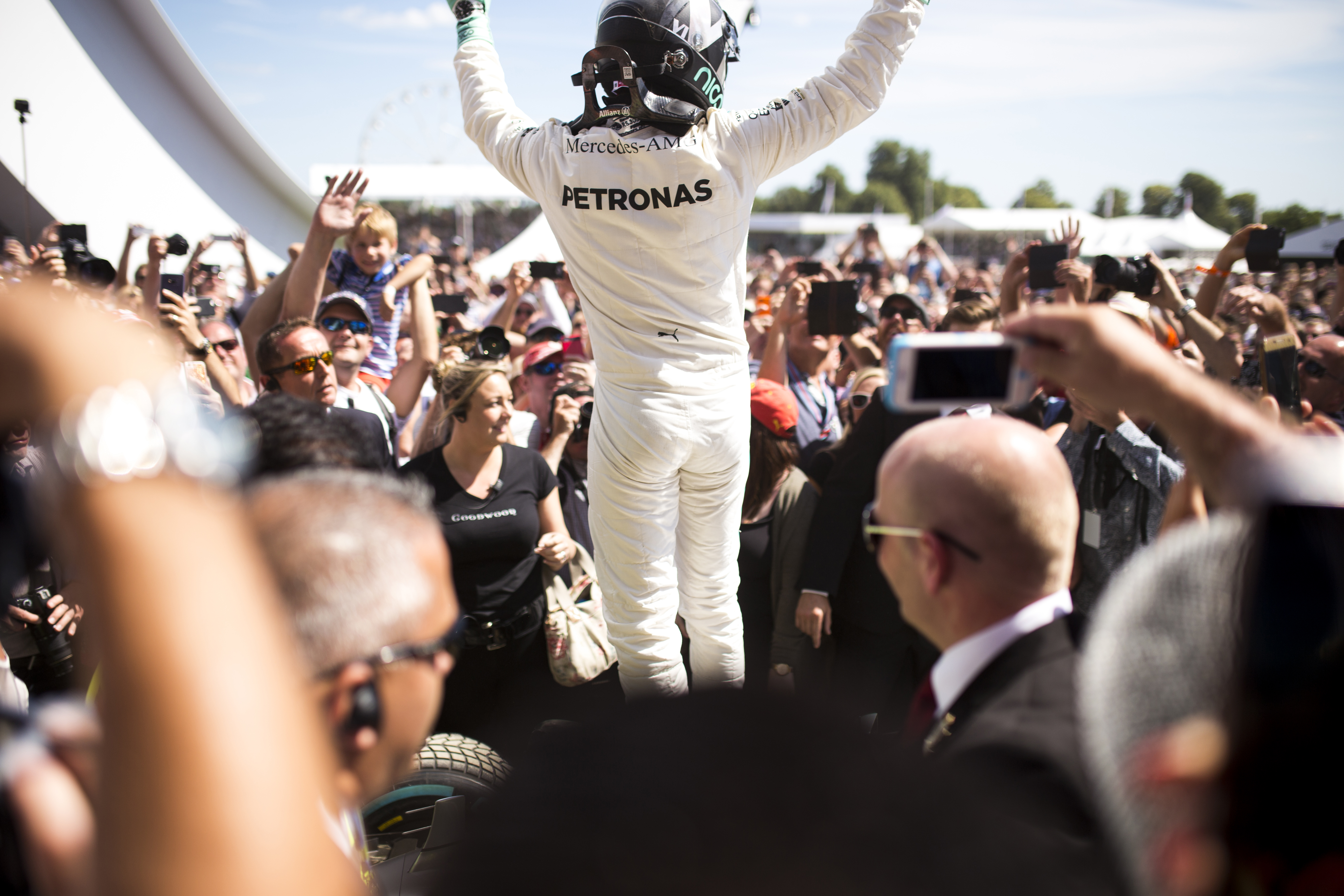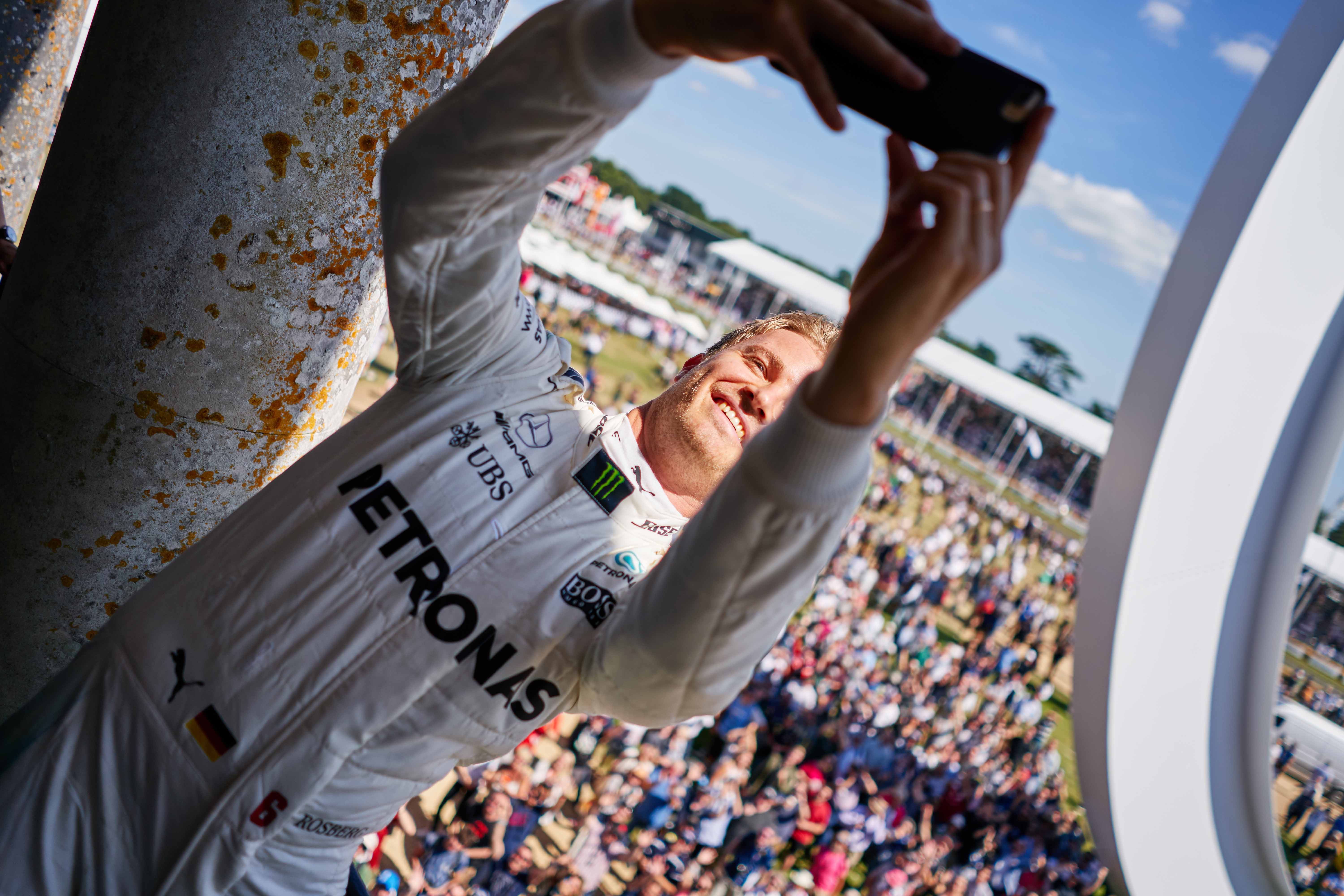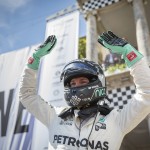 Reigning Formula One World Champion Nico Rosberg put on a tyre-shredding display aboard a 2014 Mercedes-Benz F1 WO5 Hybrid this afternoon. The ever-smiling German was on stellar form, and said later: “It’s a special day for me. I love it here. I’ve been to the Festival maybe eight times, but this time it’s different and awesome to be here as World Champion.” Asked if he might return to the cockpit as a race driver at some point in the future, he didn’t completely bat away the idea. “Right now, I’m taking a step back after 20 years of intensity. I loved getting back in my old car, and the crowd here is just the best, but right now I’m thinking only as far as the next few days. Beyond that, who knows?”