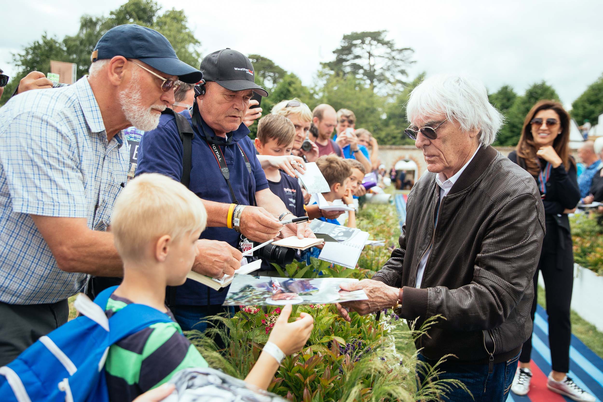 This year’s honoured guest, Bernie Ecclestone, received a boisterous reception on Sunday afternoon as he joined Lord March on a fast run up the hillclimb course, chased by a cavalcade of Grand Prix icons. The racer turned team manager turned entrant (via his purchase of Brabham) and latter-day F1 czar was then joined outside Goodwood House by grandees of Formula One, past and present. These included the likes of Brabham old boys John Watson and Herbie Blash, former F1 team boss Peter Sauber and reigning F1 World Champion, Nico Rosberg.