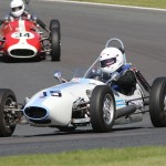 Mark Woodhouse was the cream of the Historic Formula Junior front-engined division in his Elva despite the best efforts of Mike Walker in the Bond, while Andrew Hibberd duly took both rear-engined races.