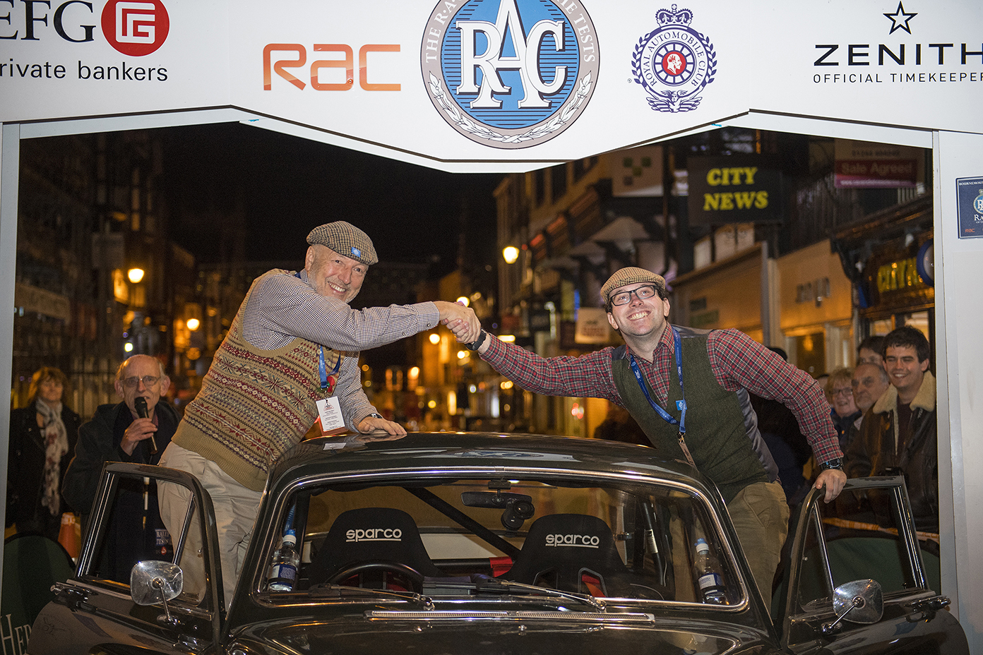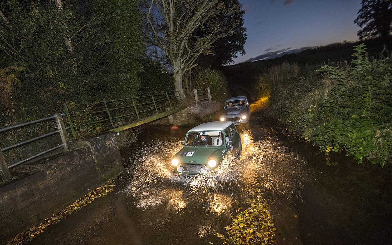 Day two was another beautiful day and unlike the 2015 running we had two days of sun in a row, leaving Bristol behind it was straight into action with a driving test at the famous RAC Headquarters at the side of the M5. Once again this attracted a large crowd to cheer on and encourage competitors as legendary race and rally driver, Paddy Hopkirk flagged crews away from the start line. Six crews tied on fastest time at 36 seconds, with Steve Entwistle / Henry Carr setting a time one second slower in Paddy’s famous Mini, 6 EMO which had previously won the Classic Marathon. One tests at Washingpool Farm and two tests at Chepstow Racecourse came up next with Patrick and Hubert Lynch battling with Clive & Anji Martin for top honours ‘Down on the farm’ whilst Sybren van der Groot / Jaap Jongman put in a stunningly quick time at the longer first Chepstow test with Naaktgeboren / den Hartog fastest on the second. Navigationally, a battle had broken out between den Hartog and two other crews, Martyn Taylor had gone with a route he had tried to second guess and it proved the wrong choice dropping them down the leader board. Paul Crosby / Andy Pullan had an amazing day despite the total lack of power with an ailing engine – compression issues still apparent but had fought their way up to third behind an ever-improving Andy Lane / Richard Crozier. They were chomping at the heels of Naaktgeboren / den Hartog who although ineligible for overall awards were all out to take the unofficial top spot. The night section on day two was held in Swynnerton Army barracks with two time control sections delivered on tulip style instructions, using the maze of lanes inside the complex the first section was slightly longer and was not only quick but testing. Jonathan Turner / Ben Cussons were out in an ex-works Austin-Healey 3000 that had been used by Timo Maakinen and Rauno Aaltonen as well as Paddy Hopkirk in times past, Turner exclaimming that it was one of the finest motor sport experiences he had taken part in with many crews also voicing the same feelings. The second section was still as competitive, Crosby / Pullan were in a class of their own and rose right through the ranks despite their mechanical issues. John & Peter Dignan were hoping to better their finish on last year’s event and lay in unofficial fourth – a fine performance from the Father and Son team. It was a case of 10th time unlucky for Rally of the Tests regulars Brian and Janette Dwelly, their generally supremely reliable Morris 1000 started to misfire on the prologue, cured itself and then decided to blow it’s head gasket before Chester making it a very rare DNF for this popular pair.