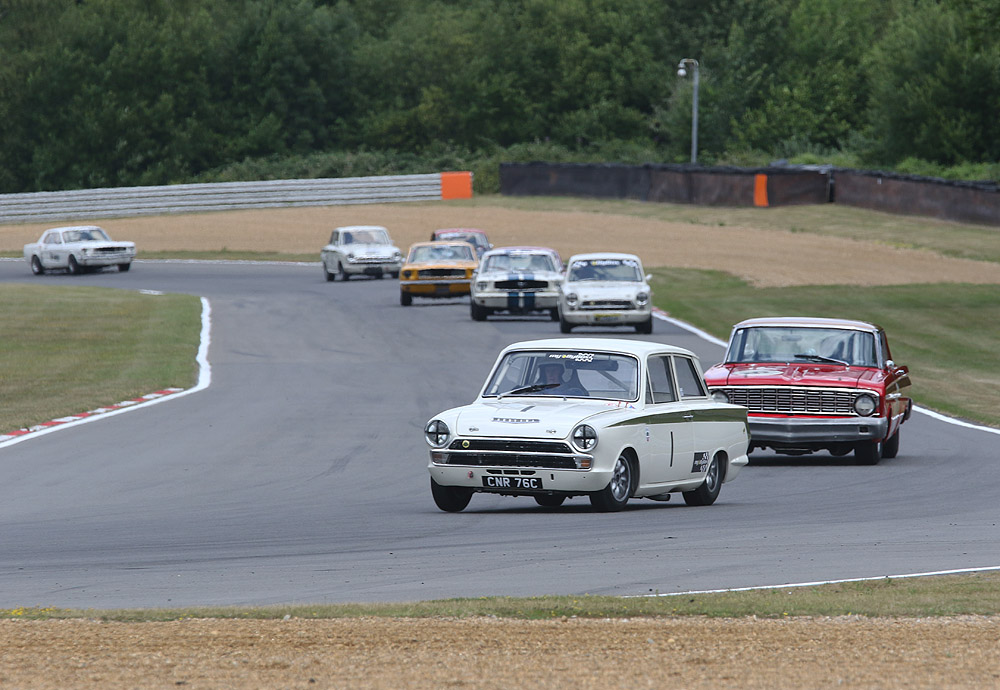 In the ByBox Historic Touring Car Championship Voyazides was a winner in his ultra-successful Ford Falcon and went clear of the pack once he worked ahead of early leader Tim Davies (Lotus Cortina). Warren Briggs (Ford Mustang) went through to second as Davies had to race hard to see off the Lotus Cortina of Mark Davies.