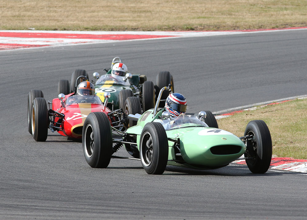 The Historic Grand Prix Cars Association provided two great races from a wonderful capacity grid of pre-1966 Grand Prix cars. Jon Fairley (Brabham BT11) and Peter Horsman (Lotus 18/21) shared the wins and on Sunday Horsman went clear of a fantastic Cooper duel for second between Barry Cannell (T51) and Rod Jolley (T45/51).