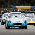James Colburn claimed honours in an incident-filled Weslake Cup which kicked off Sunday’s on-track action. Teenage sensation Richard Woolmer, who starred in Saturday’s wet qualifying aboard his Sebring Sprite, was slow off the line, James Colburn blasting into the lead from the outside of the front row in his Lenham Sprite GT as the flag descended. They proceeded to streak into the distance, swapping the lead repeatedly only for a safety car period to bunch up the field and obliterate their advantage. The race was restarted shortly before half-distance, only for Woolmer and James Dean in Stephen Skipworth’s Ecosse Sprite to connect almost immediately. Both cars were eliminated on the spot, fortunately without injury to either driver. The race was red-flagged, but Colburn was never headed once racing resumed although battles raged down the order right until the end.