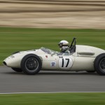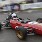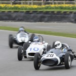 Andrew Hibberd was in a class of one as he claimed honours in the Derek Bell Cup at the 75th Members’ Meeting. The race for one-litre Formula Three ‘Screamers’ saw plenty of action up and down the order, with pole-sitter Hibberd surviving a grassy moment on the first lap to establish an unshakable lead. He simply disappeared into the distance during the 20-minute rate, steering the ex-Chequered Flag Brabham BT18 which won at Goodwood in period. Hibberd’s victory margin was an astonishing 39sec.
