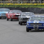 The Alan Mann Racing team must have been holding their breath watching Craig Davies and Steve Soper going wheel to wheel in the two Alan Mann liveried Ford Mustangs. Craig Davies won the race but it was a close run thing with both cars having a minor coming together and going for grassy excursions in the latter part of the race. Rob Hall kept them honest in the bright blue Ford Falcon Sprint, to come third, with Oliver Hart in 4th and Michael Squire rounding up the top 5.