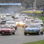 Chris Ward picked up from where he left off to win Sunday’s instalment of the Gerry Marshall Trophy. The reverse-grid race worked brilliantly, with the fastest cars from Saturday’s race starting from the back of the field before working their way to the front. There was no stopping the blisteringly quick Rover SD1 of Ward, the veteran charger tearing up the order to take the lead three-quarters of the way into the 20min encounter. The star of the race for many, however, was Jim Morris in his Volkswagen Golf GTi who valiantly led for much of the distance, only to be bundled down to fourth with only a few minutes left to run.