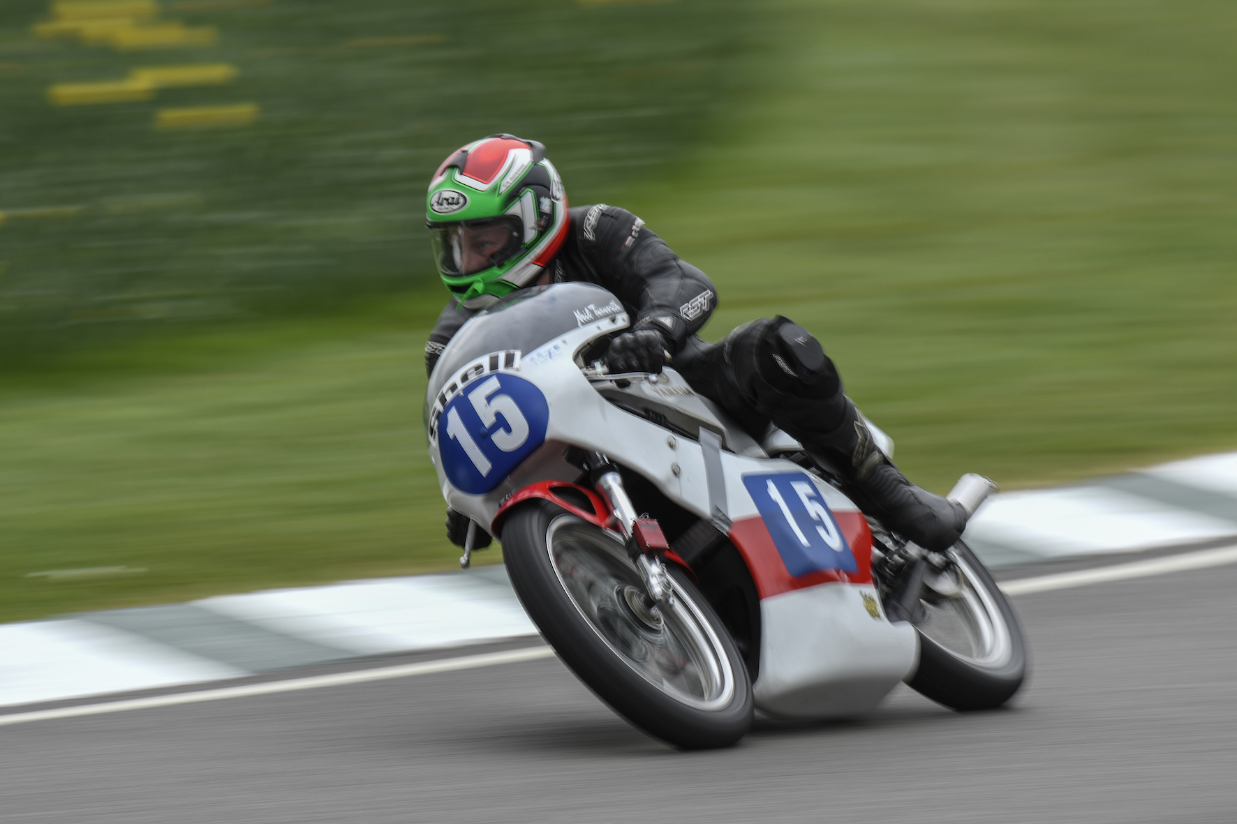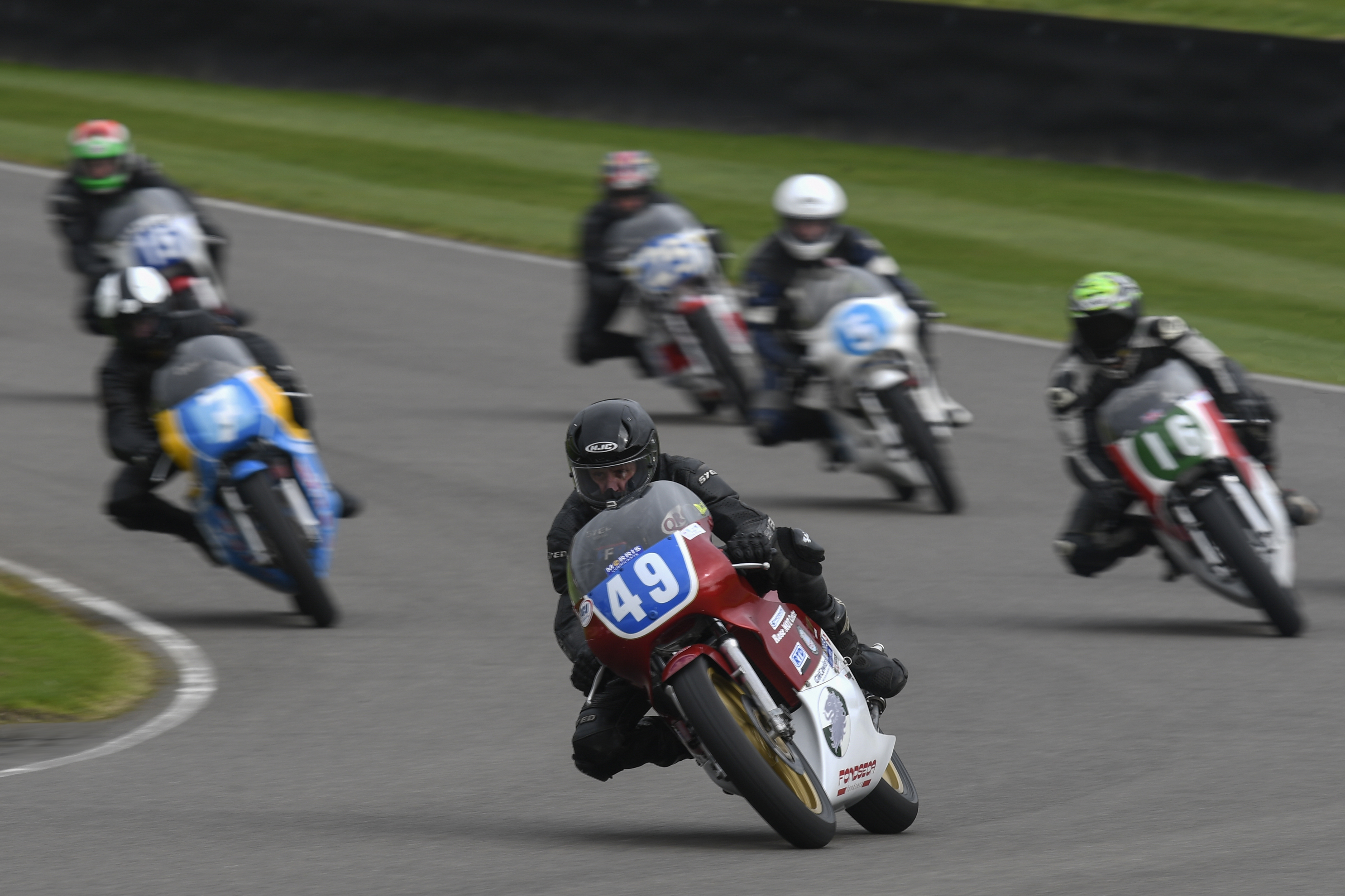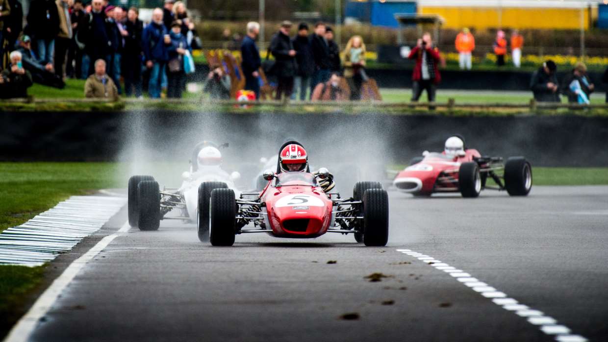 Andrew Hibberd was in a class of one as he claimed honours in the Derek Bell Cup at the 75th Members’ Meeting. The race for one-litre Formula Three ‘Screamers’ saw plenty of action up and down the order, with pole-sitter Hibberd surviving a grassy moment on the first lap to establish an unshakable lead. He simply disappeared into the distance during the 20-minute rate, steering the ex-Chequered Flag Brabham BT18 which won at Goodwood in period. Hibberd’s victory margin was an astonishing 39sec.